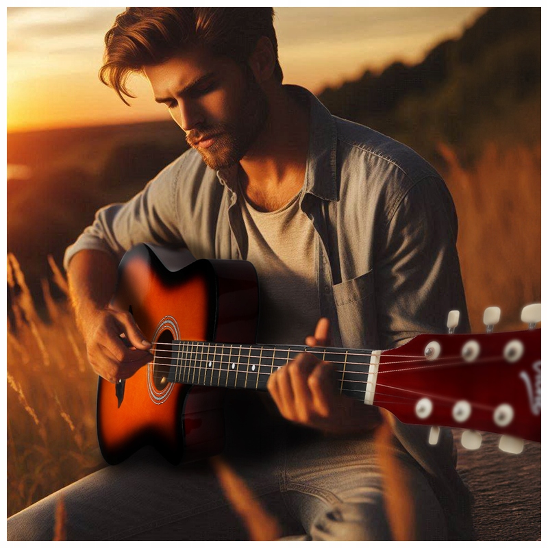 КЛАССИЧЕСКАЯ АКУСТИЧЕСКАЯ ГИТАРА НАБОР 4/4 Медиаторы РЕМЕНЬ СТРУНЫ КОРПУС АККОРДЫ