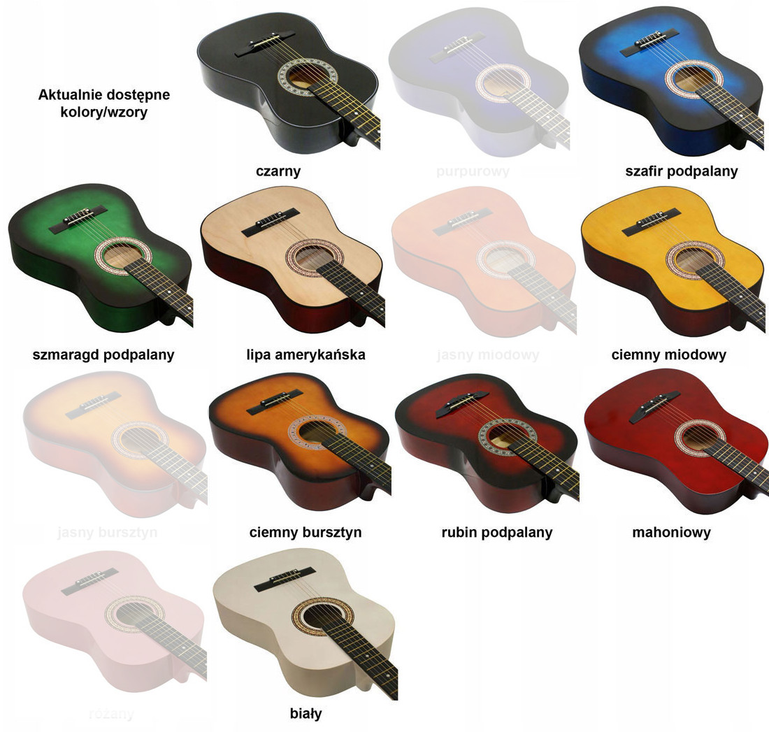 Мы предлагаем до 13 различных цветов + множество дополнительных рисунков. После покупки, пожалуйста, выберите и сообщите нам, какой из них отправить. Вы можете найти список доступных на данный момент цветов/рисунков на миниатюрах. Примечание: светлые фотографии без подписей означают, что представленной гитары нет в наличии.