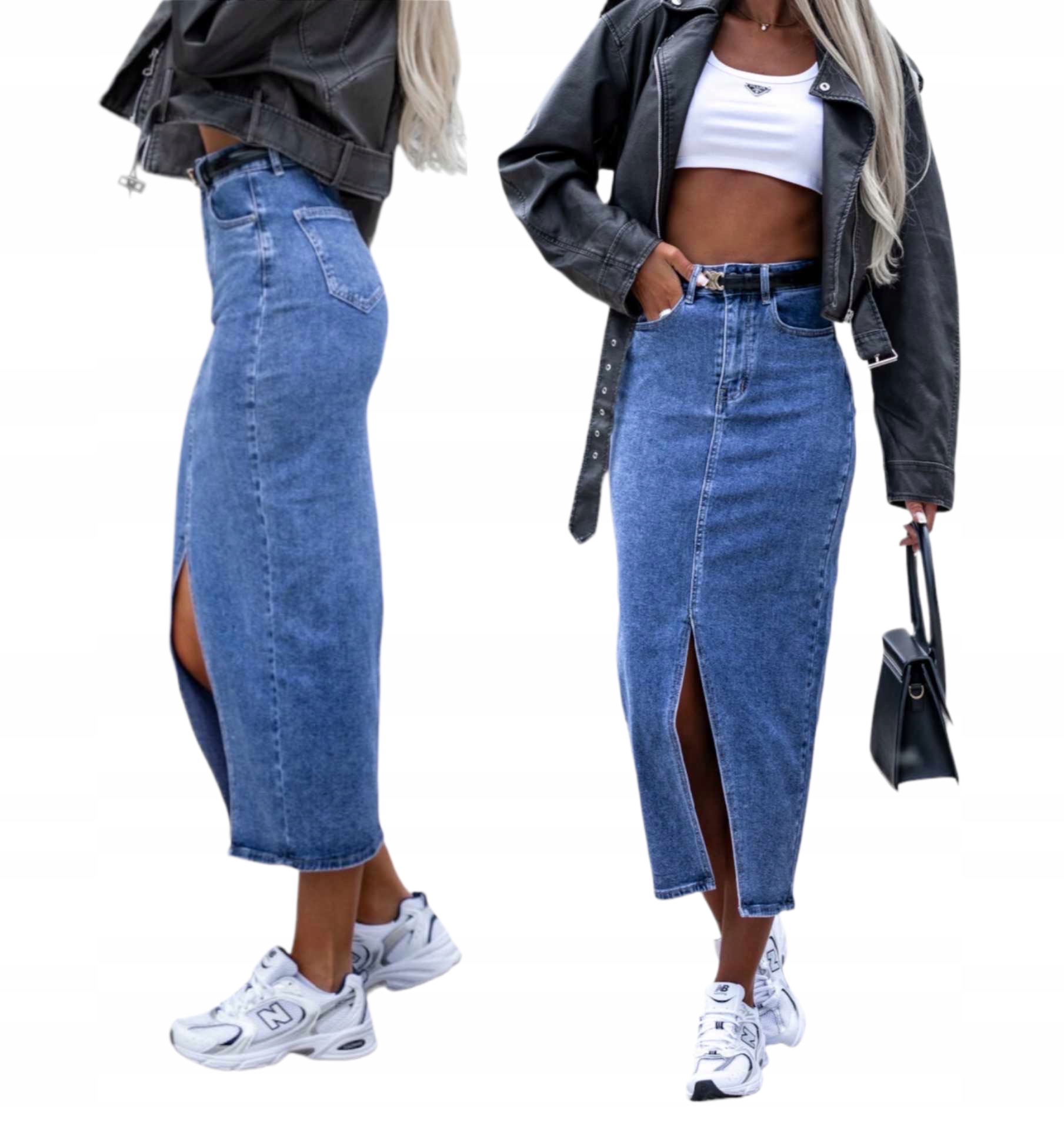 Классическая длинная джинсовая юбка с обломком спереди. Изготовленный из гибкого материала, он очень хорошо адаптируется к телу. Длинная джинсовая юбка - это классический предмет одежды, который представляет ноту повседневного очарования и комфорта для стиля. Эта юбка является модной и практическим решением для многих раз. Юбка темнее, чем на картинке.