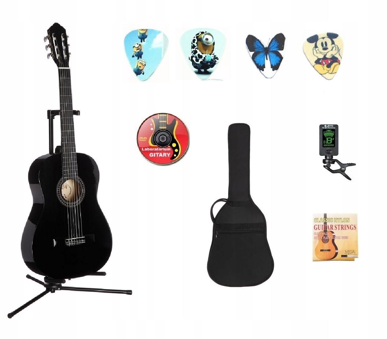 футляр, ремешок, DVD, игральные кости, силиконовые напальчники, запасные нейлоновые струны и тюнер! >