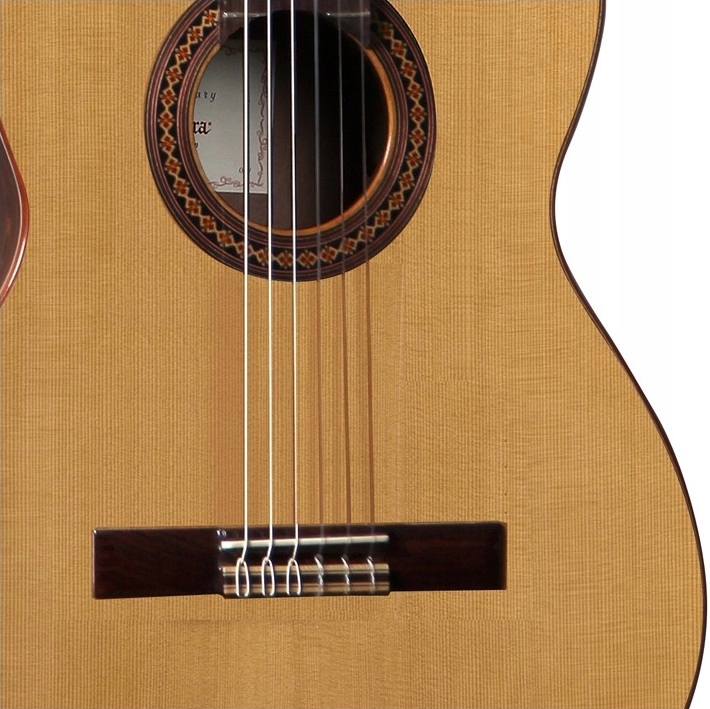Из-за темного цвета и высокой плотности из нее изготовлены боковые и задняя части деки, дополнен верхней пластиной из массива кедра. Такое сочетание вносит нотку свежести в мир классической гитары и определяет оригинальность как гитары, так и играющего на ней музыканта. Эта модель также имеет хорошо подогнанный переплет, соответствующую розетку и позолоченные ключи. И все это по почти шокирующей цене, особенно если учесть тот факт, что по экологическим соображениям распиловка таких пород древесины, как зирикот, очень ограничена.
