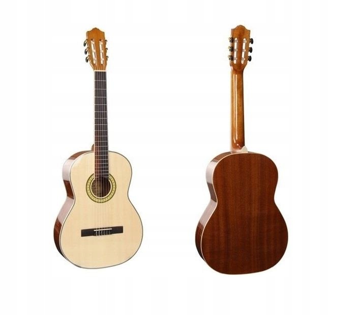 Классическая гитара Elmira C-40-сенсационный инструмент, созданный для детей, начинающих приключение с этот инструмент. C -40 - это модель по размеру 4/4 - идеально подходит для детей от 11 лет и для взрослых! Elmira C-40 рекомендуется учителями музыкальной школы. Инструмент имеет чрезвычайно удобную шею, которая оказывает очень позитивное влияние на удобство игры и, следовательно, на быстрый прогресс. Дополнительным преимуществом является установленная стержень, который позволяет отрегулировать кривизную гриффин. Гриф и мост был сделан из палисандра. Отделка/Цвет: Gloss/Natural