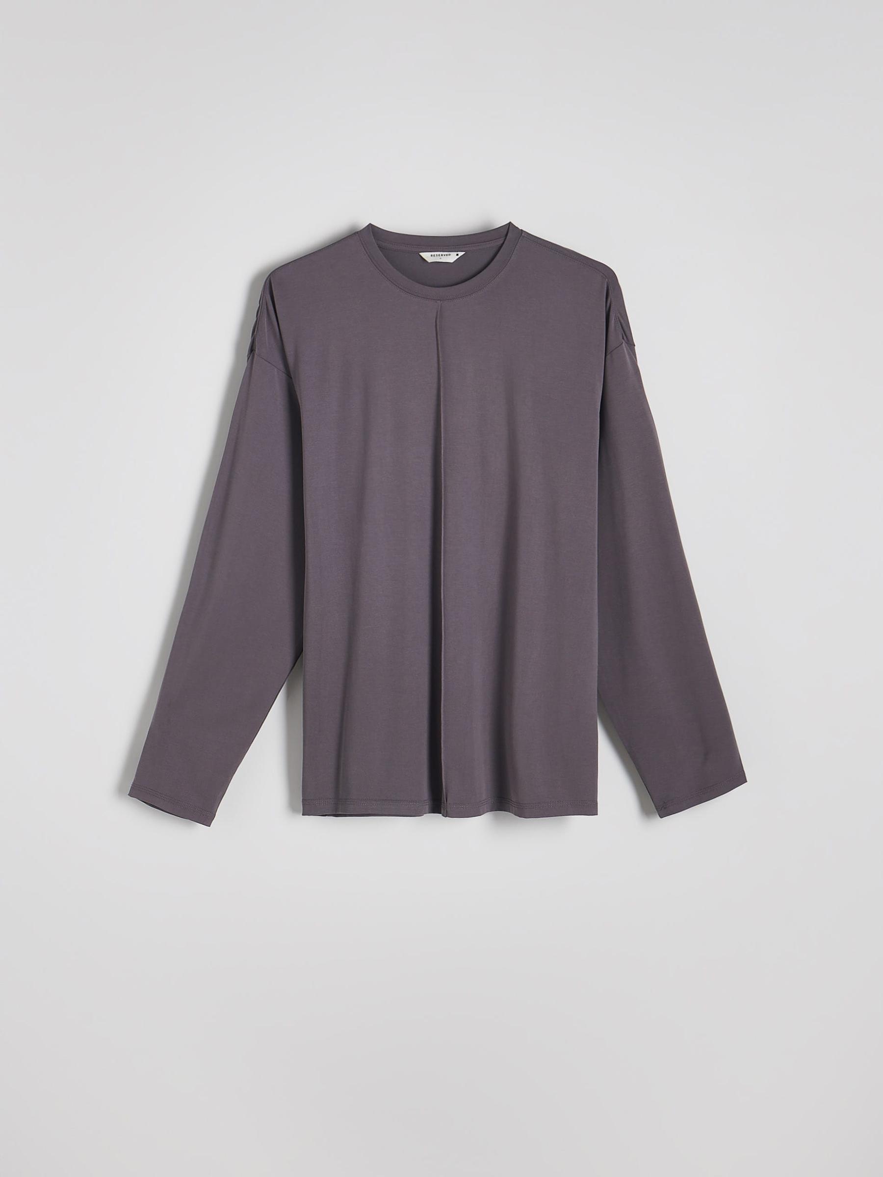 КЛАССИЧЕСКАЯ ГРАФИТОВАЯ БЛУЗКА, ВИСКОЗНАЯ ФУТБОЛКА, ДЛИННЫЙ РУКАВ, ЗАРЕЗЕРВИРОВАНО L