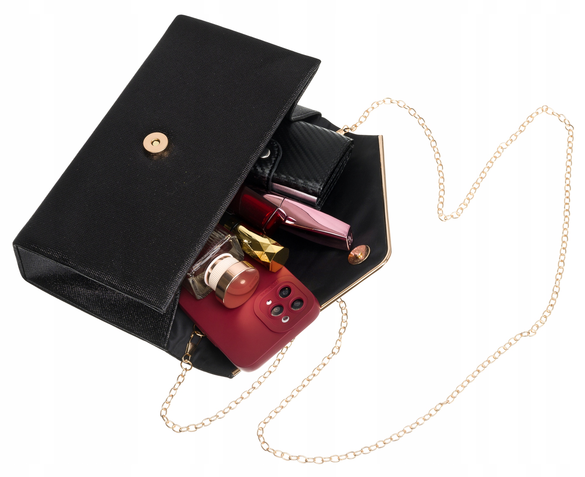 Золотая цепь прикреплена к сумке длиной 115 см, что позволяет вам комфортно носить его на плече или протянуть через тело. Деликатная, но сплошная цепь прекрасно сочетается с блестящим материалом, добавляя всю легкость стиля и класс. Это отличное решение для женщин, которые ценят бесплатные руки и комфорт во время вечеринок или прогулок.