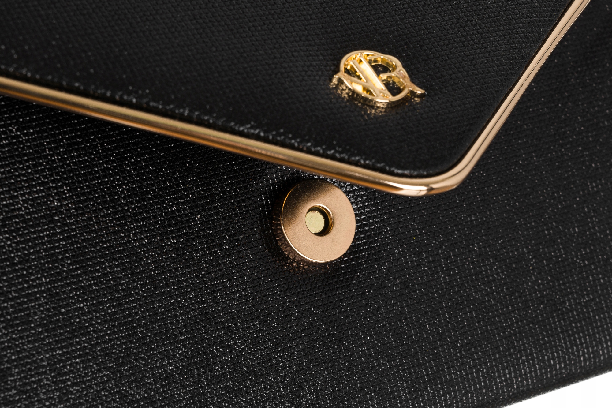ta Black Women's Clutch Sack - это квинтэссенция стиля и тонкой элегантности. Ее блестящая текстура нежно в свете, добавляя великолепие любой стилизации. Лоскут украшен изысканной золотой отделкой в форме буквы V и небольшим логотипом, который привлекает внимание его минимализмом.