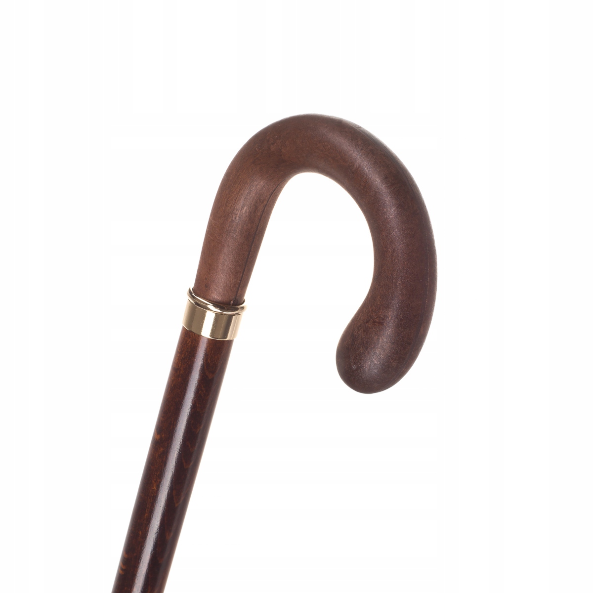 Классическая коричневая трость для опоры, в традиционном стиле, с большой, массивной, закругленной ручкой из коричневого пластика с фактурой дерева. Ручка деревянная, коричневая. Стержень и ручка разделены золотым кольцом. Впечатляющая классическая трость, подходящая как женщинам, так и мужчинам.