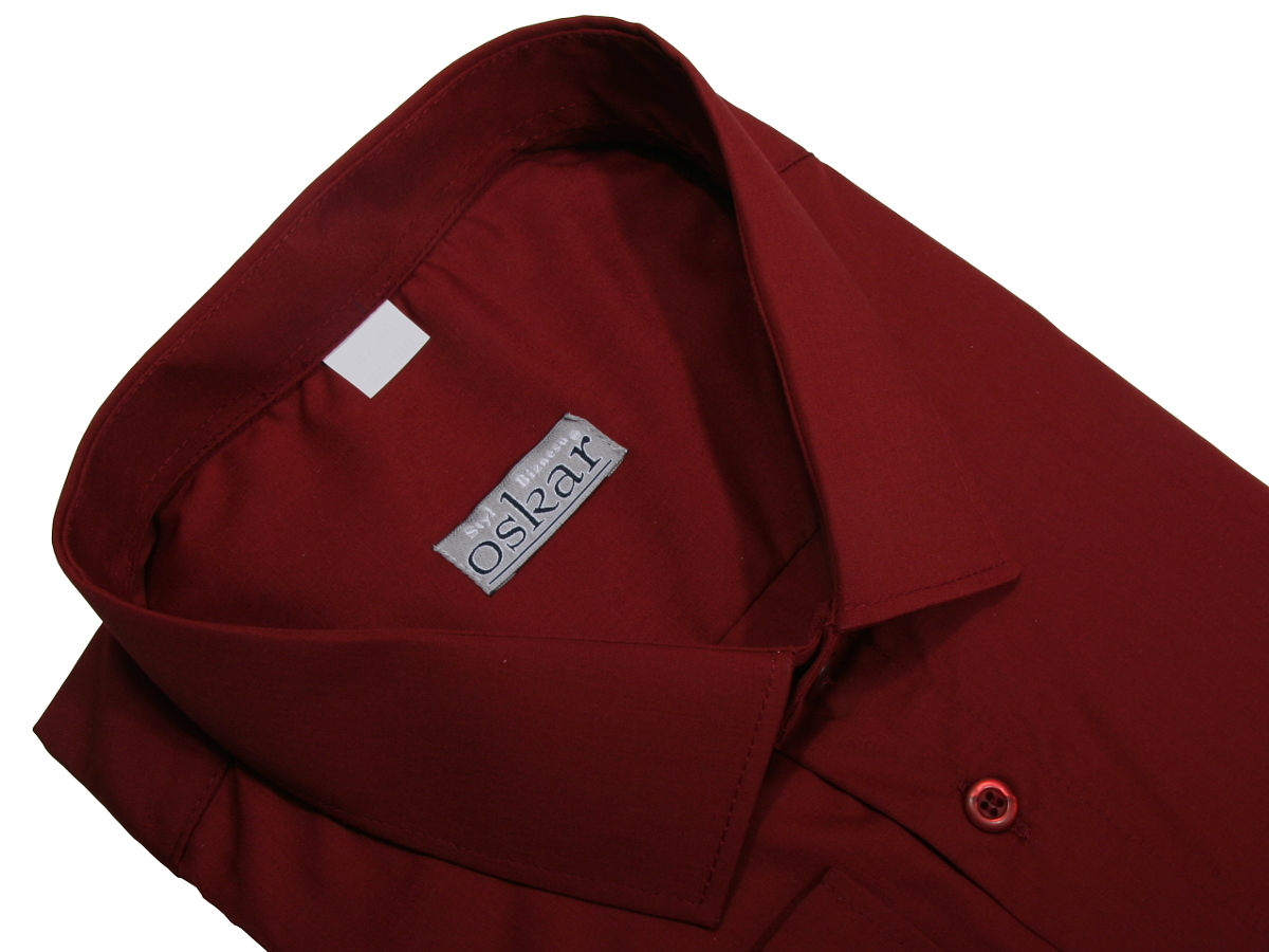 Рубашка бордового цвета высочайшего качества с длинными рукавами и манжетами, застегивающимися на запонки или пуговицы.