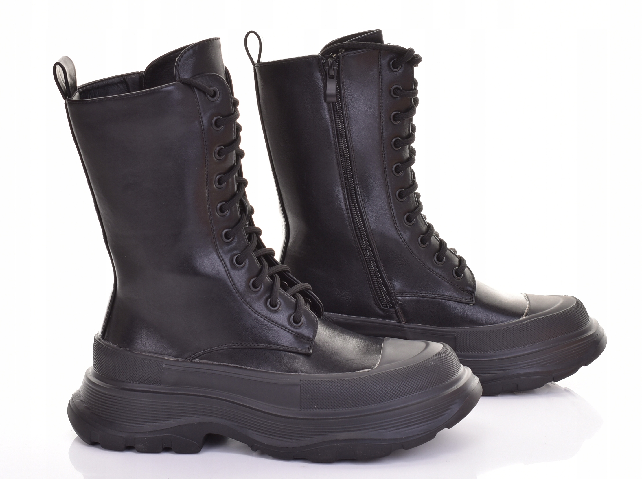 Классические женские ботинки высоко на платформе Black Eco -leather
