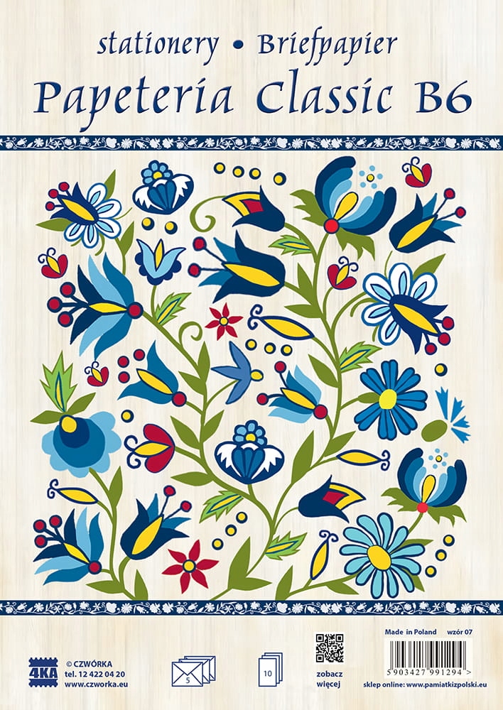 - В комплект входят: 5 конвертов B6 и 10 листов писчей бумаги B5. Декоративная печать на обеих сторонах. конверты и открытки, соответствующие мотиву на обложке. Канцелярские товары упакованы в полиэтиленовый пакет. Сделано в Польше.