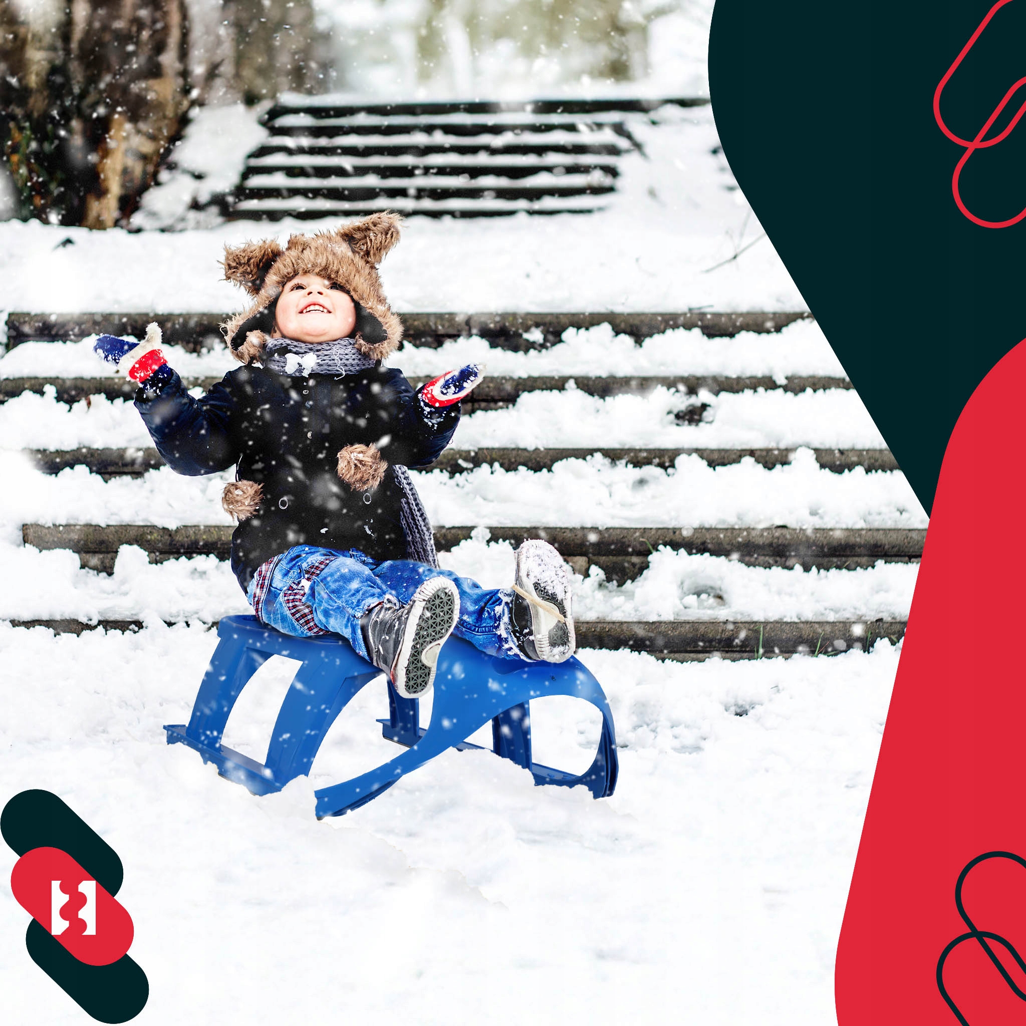 Форма полозьев обеспечивает исключительно хорошее скольжение, благодаря чему сани плавно скользят по заснеженным склонам. Конструкция была разработана, чтобы обеспечить детям устойчивость и уверенность во время игры, сводя к минимуму риск опрокидывания во время езды. В комплект входит красочная верёвка, которая облегчает тянуть санки — идеальное решение для родителей.
