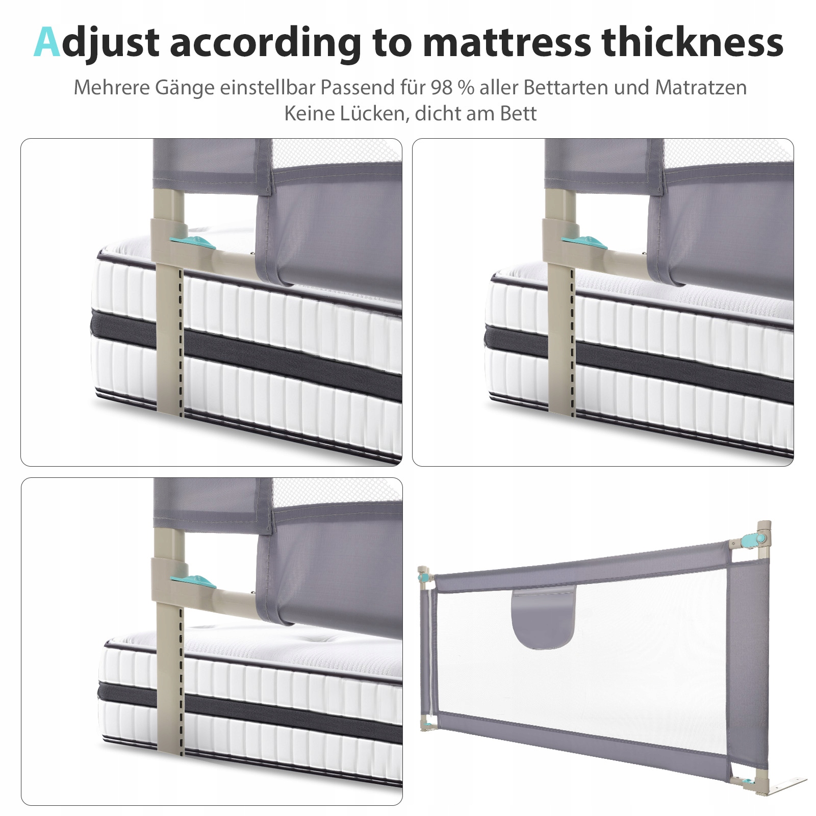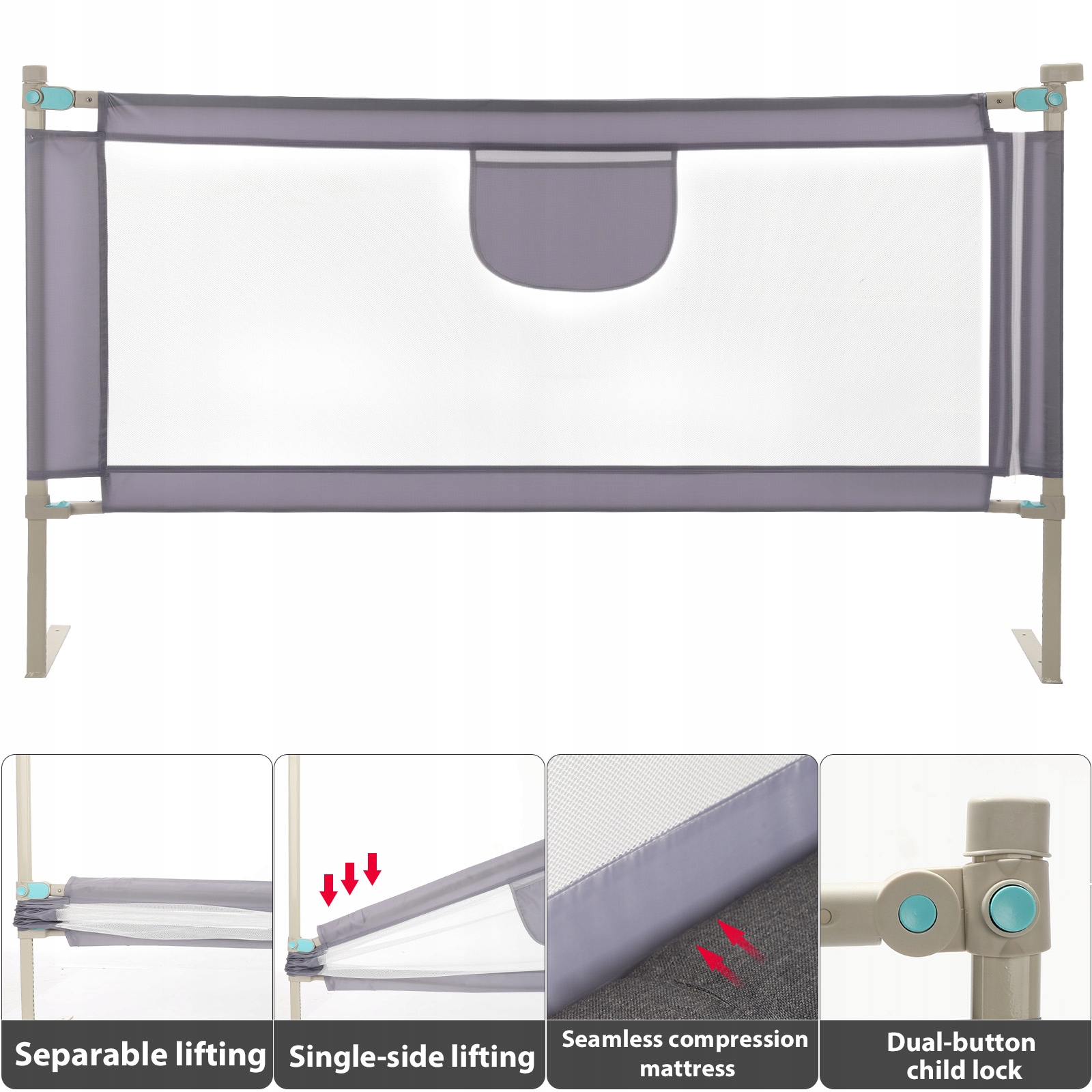 Эта рельса кровати может быть поднят вертикально. Его можно опустить в течение дня, чтобы сделать его ниже поверхности слоя. Это может быть поднято ночью, чтобы обеспечить безопасность детей, удобную и быстрое. Рядом с матрасом легко сшит для большей стабильности и противодействия шокам. Легко установить благодаря иллюстрированным инструкциям сборки. Подходит как кровать, семейная кровать, кроватка и детский барьер. Создание времени сна малыша безопаснее, и благодаря тому, что это также удобно для родителей.
