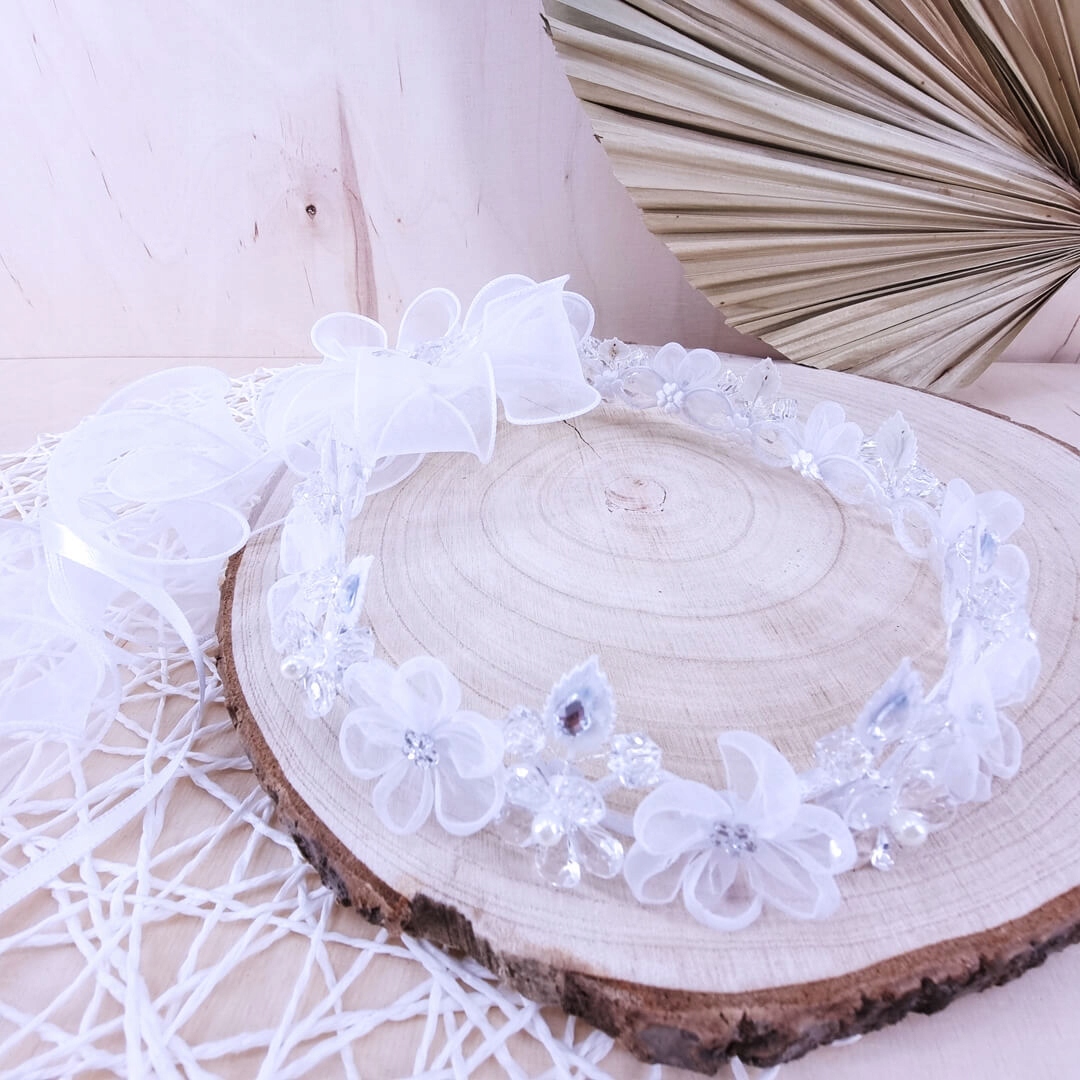 Классический венок ручной работы с хрустальными аксессуарами для Первого Причастия