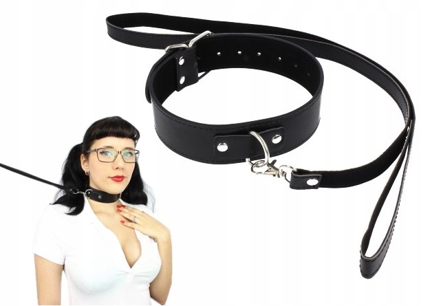 Черный шейный ошейник, подходит как женщинам, так и мужчинам - широкий диапазон регулировок. Универсальный поводок, крепящийся к ошейнику с помощью карабина, подходит для других БДСМ-аксессуаров.