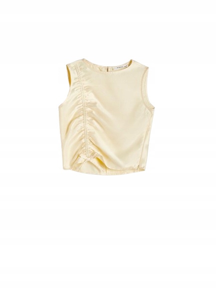 КЛАСИЧНИЙ ЖОВТИЙ АТЛАСНИЙ ТОП БЕЗ РУКАВІВ РЮШ ЗАМОК