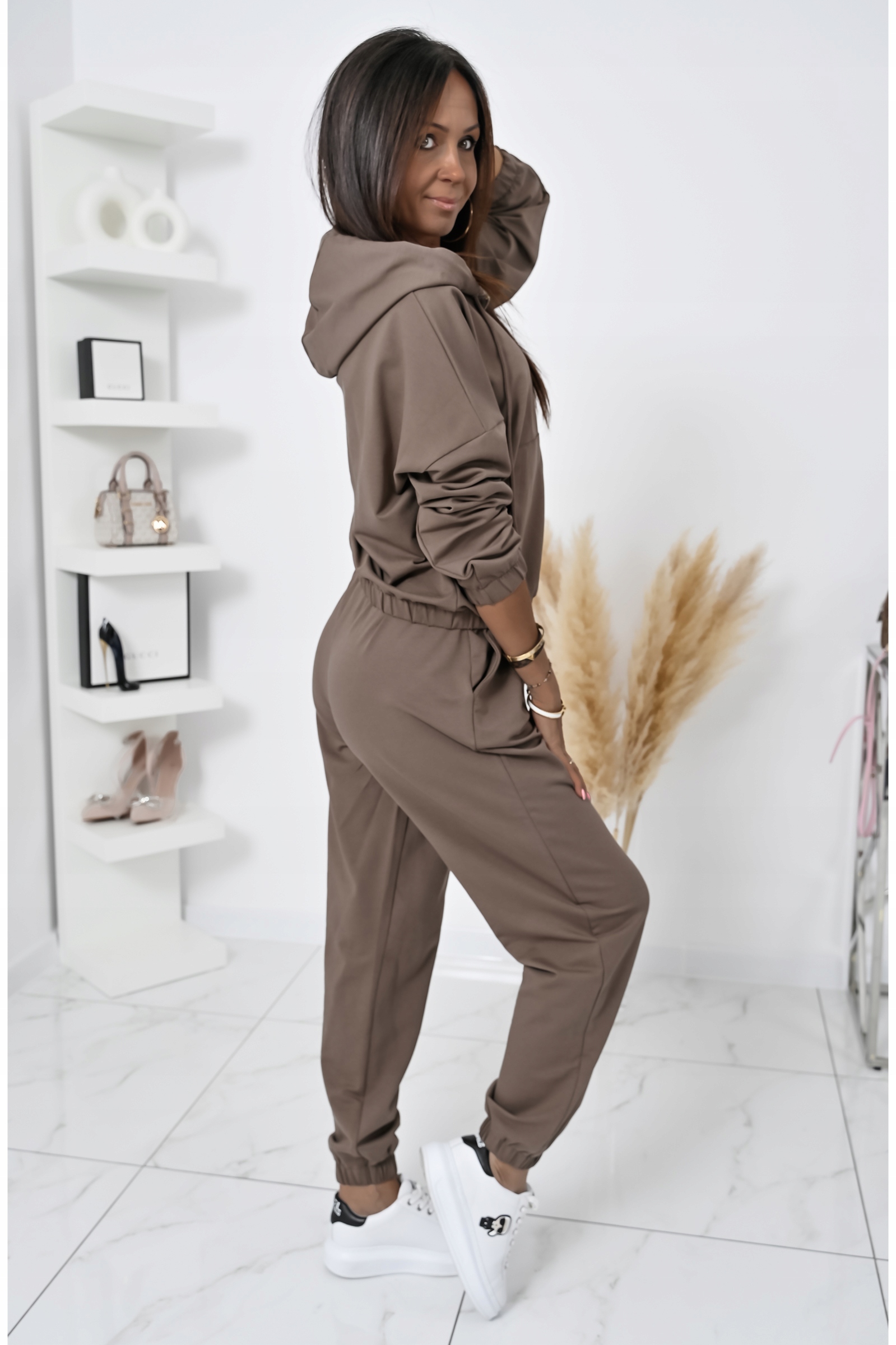 Модель носит размер S каждый день, на фотографиях она в брюках размера S