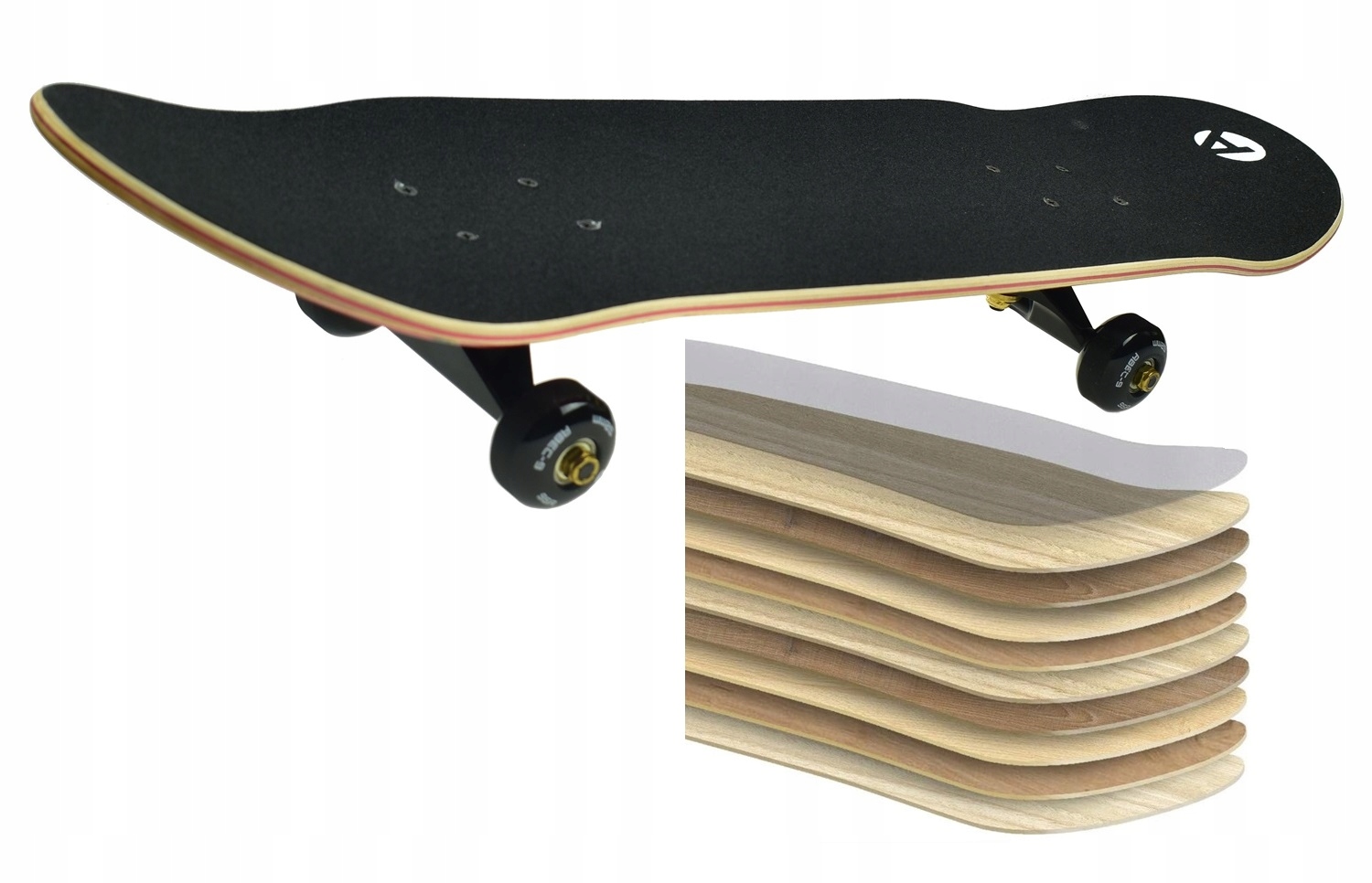 Прочная конструкция указанной модели обусловлена конструкция из 9-слойной древесины клена. Нескользящая поверхность деки повышает безопасность при выполнении трюков в скейт-парке. А резиновые колеса оптимальной жесткости установлены на подшипниках ABEC 9, отвечающих за плавность хода по прямым поверхностям.