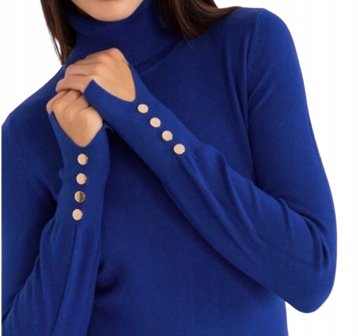 КЛАСИЧНИЙ ТОНКИЙ ДЖЕМПЕР ЖІНОЧИЙ ФИТ ГОЛЬФ ЗОЛОТІ ГУЗДИКИ НА РУКАВАХ