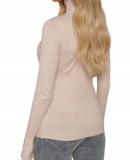 Классическая женская водолазка с золотыми пуговицами - бежевая