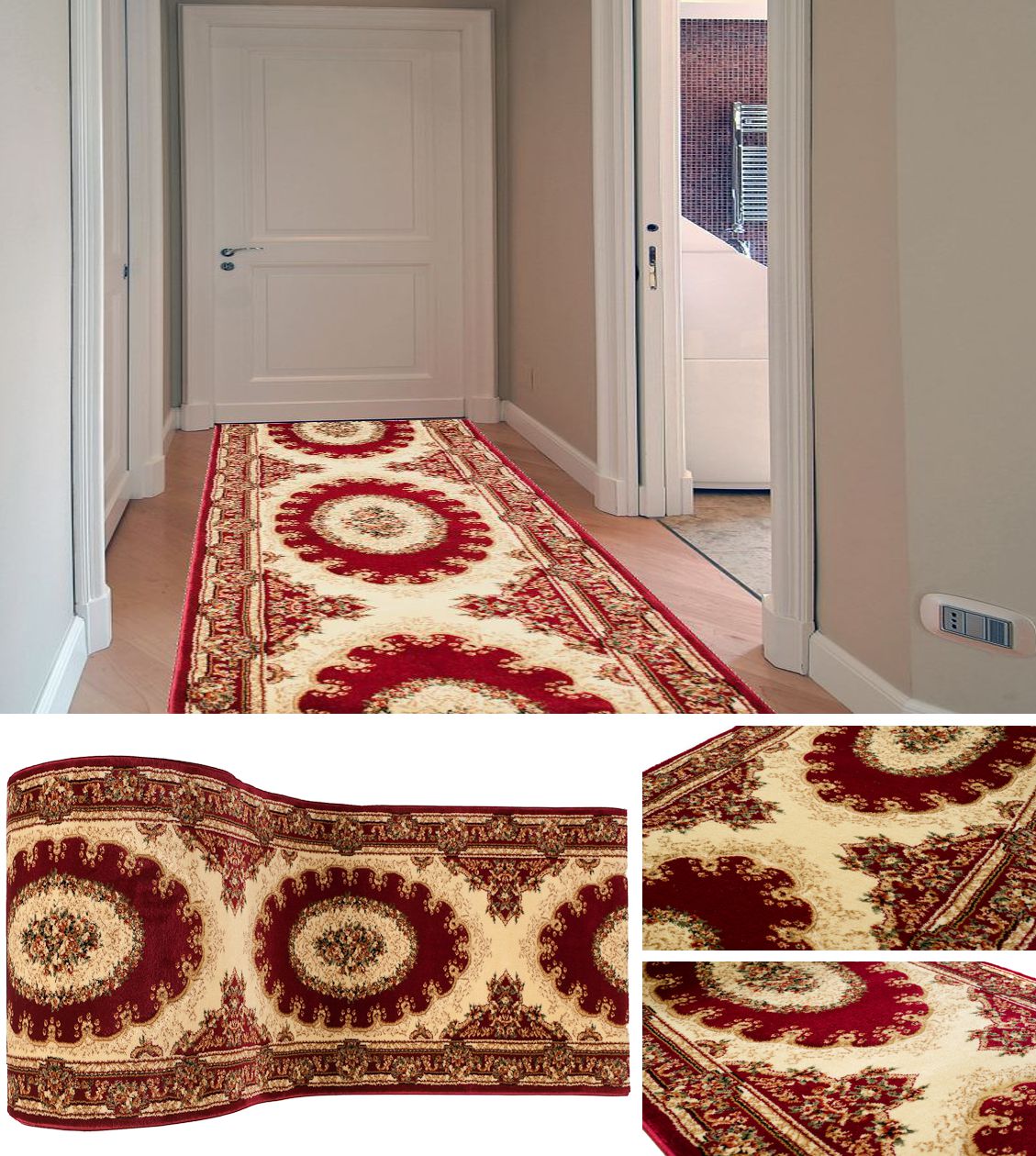 Классический шаблон дорожного покрытия дает каждому интерьеру эксклюзивный персонаж. Кроме того, тротуары характеризуются в соответствии с данным рисунком с стрижными волосами. Тротуар создает впечатление трехмерности, дополнительно обогащая комнату. Тротуары изготовлены из полипропиленовой пряжи теплового коммерческого названия, угасленного термической стабилизацией. Волокна этой пряжи антиэлектростатические, то есть они не подвержены явлению электрификации во время работы. Мягкий и деликатный на ощупь - самая совершенная имитация настоящей шерсти. Эти тротуары также являются отличным тепловым изолятором и обеспечивают отличную звукоизоляцию. Тепловой пластик очень легко чистить. Регулярного пылесоса достаточно, чтобы заботиться о ковре, и в случае грязи местного истирания с влажной тканью с подходящим чистящим агентом.
