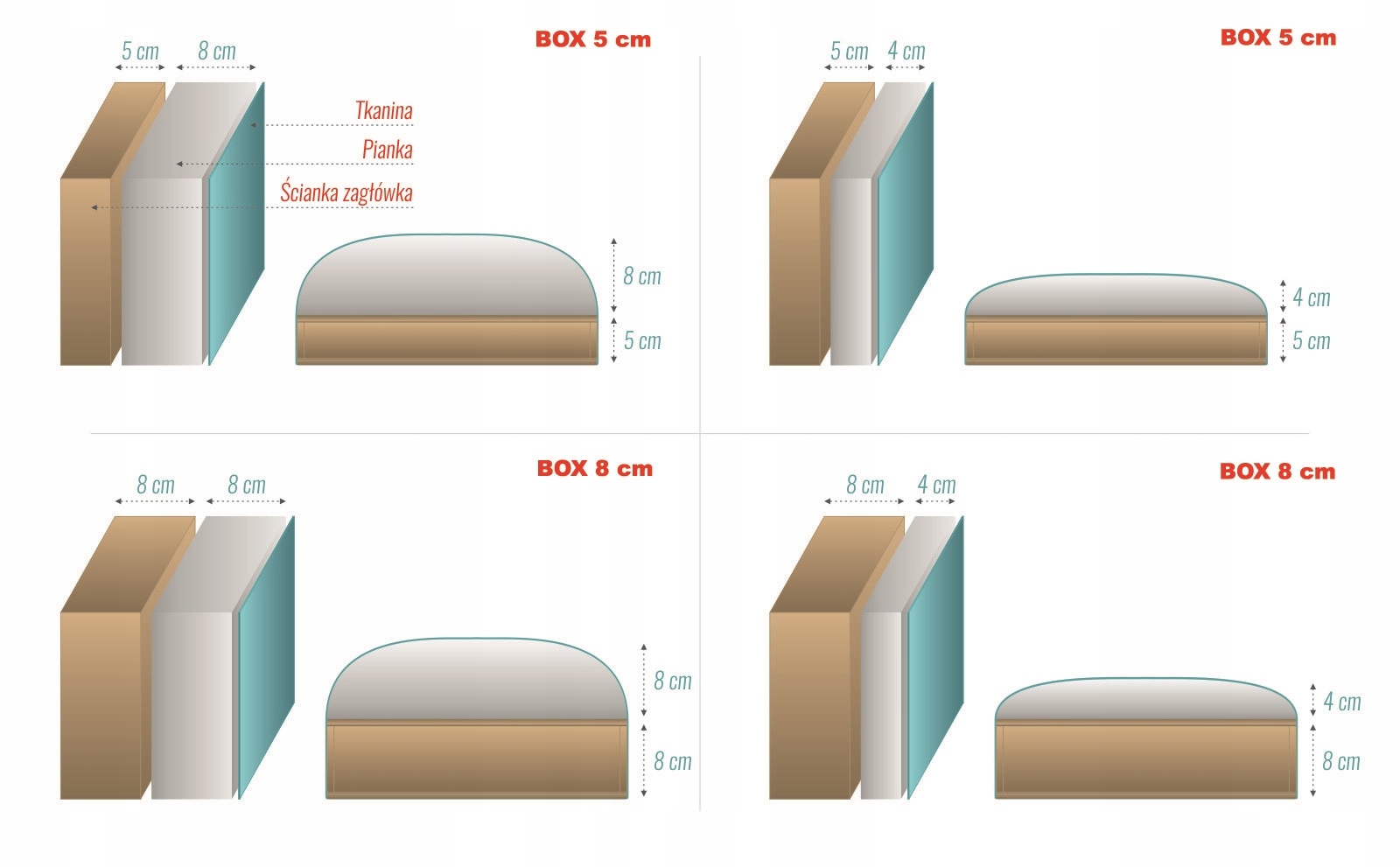 изголовье для коробки: h1> - Есть две глубины из 5 или 8 см. стегание.