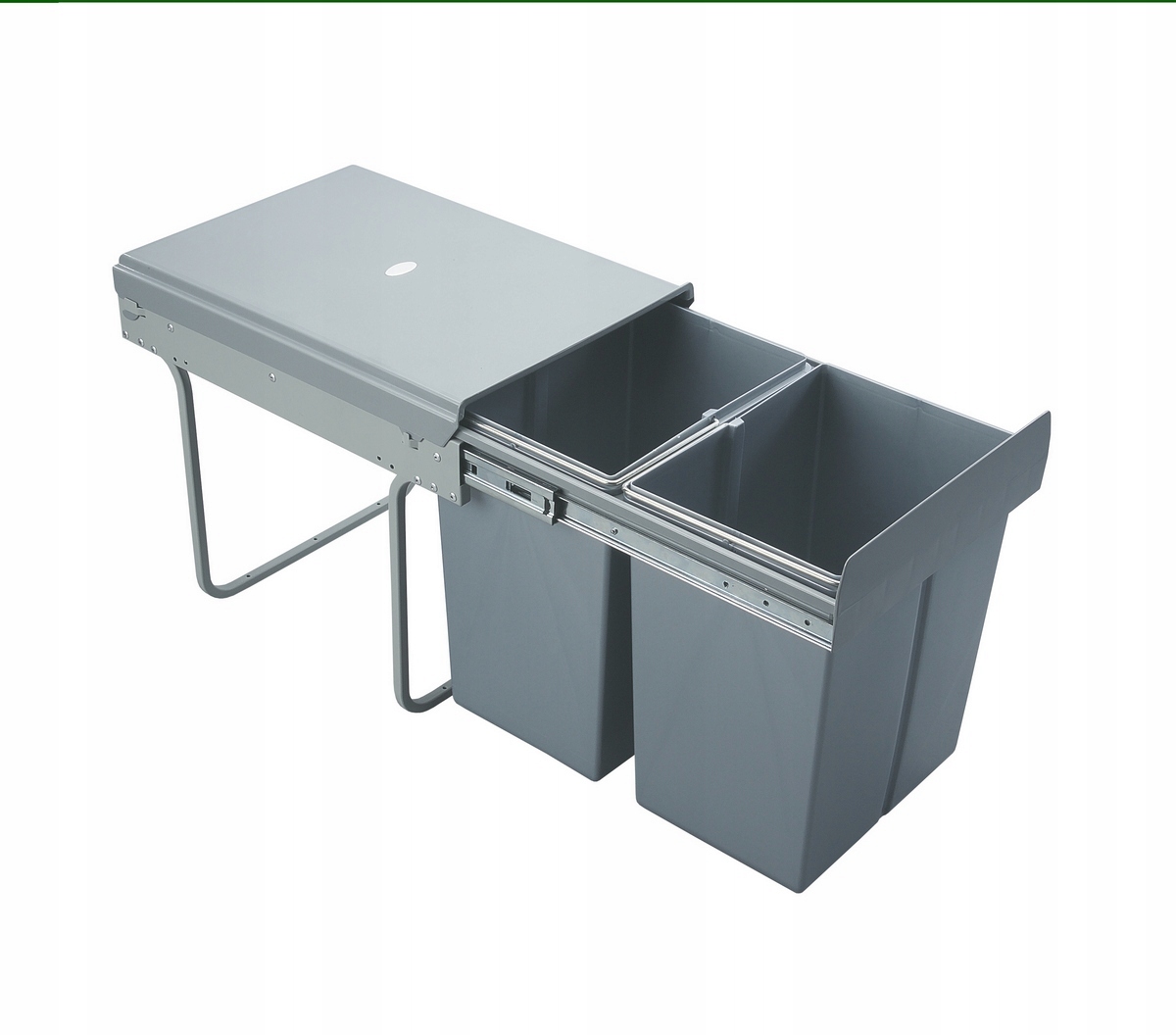 Состав комплекта: 2 контейнера для мусора, пластиковая крышка, стальная рама, направляющие