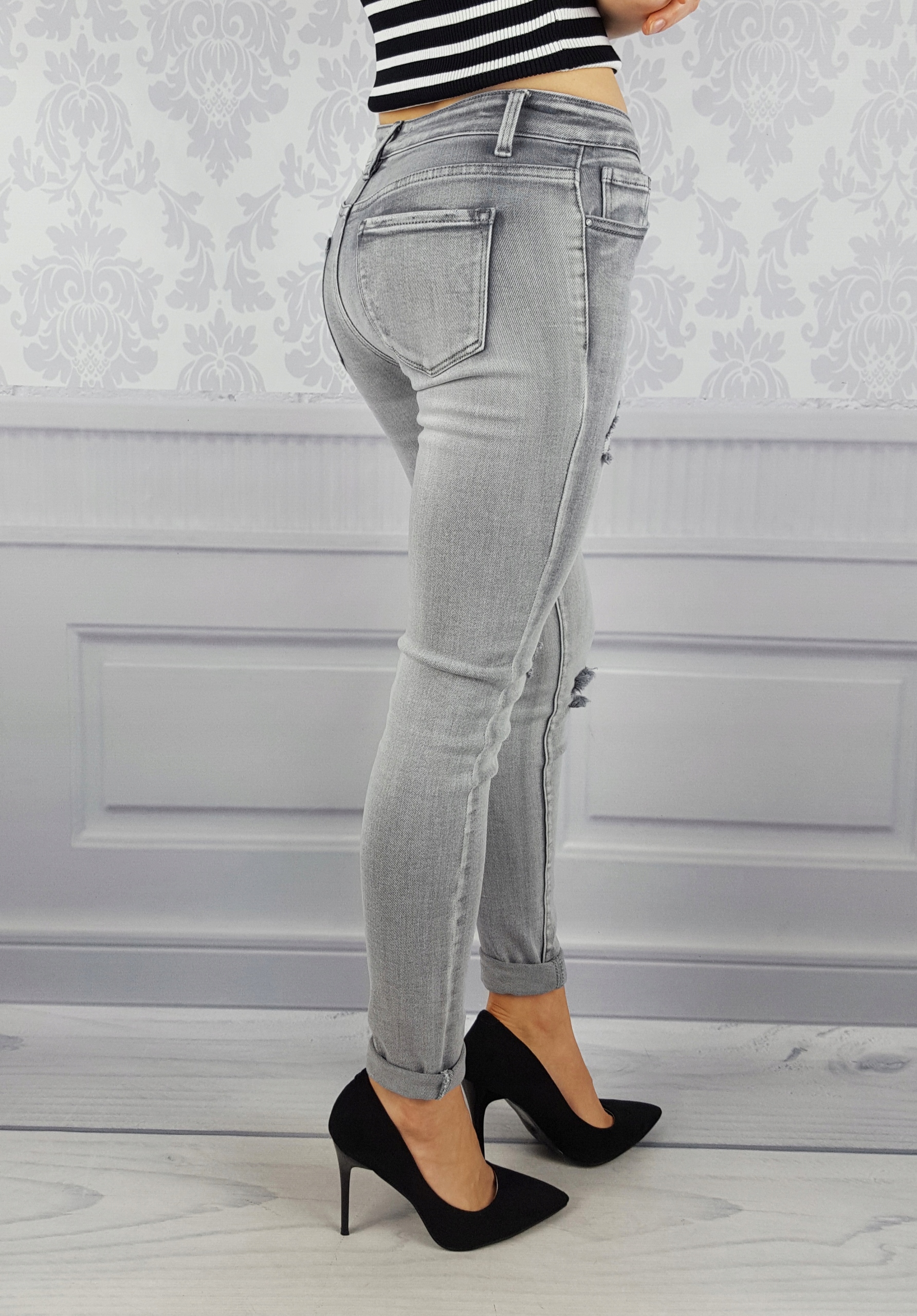 Классические джинсовые брюки с потертостями и дырками, с заниженной талией. Отлично для спортивной обуви, но они также идеальны в сочетании с обувью на высоком каблуке, благодаря своей универсальности подходят практически к любому стилю. Гибкий материал подчеркивает женскую фигуру. Брюки приталенные и тянутся. Подчеркните свои женственные формы! Сделайте свой повседневный образ уникальным. Брюки имеют карманы с обеих сторон.