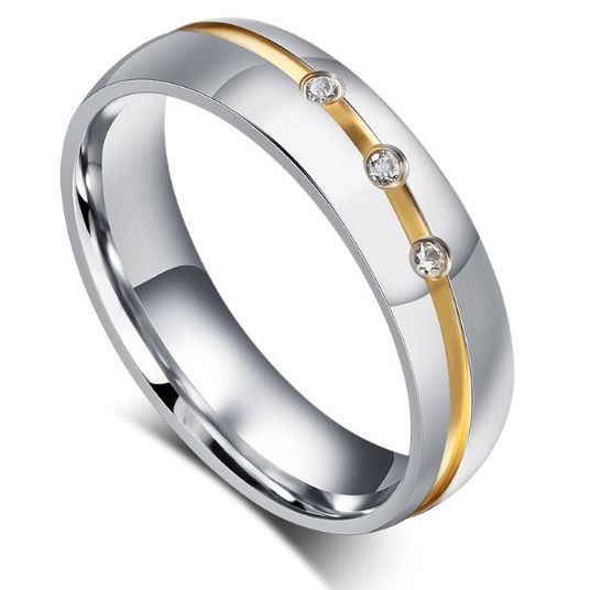 Классическое обручальное кольцо, сделанное из высококачественного нержавеющей стали 316L , также называемое нержавеющей сталью, ювелирной стали или хирургической стали. На кольце также есть декоративный разрез, который покрыт фиксированным цветом с помощью метода IP . Кроме того, он обогащен камнями, которые представляют собой три шестиугольные кубические стразы. обручальное кольцо закруглено. Общая поверхность продукта полностью полированная , блестящий, высокий глянец. Обручальное кольцо характеризуется интерьером , что определенно увеличивает комфорт его использования.