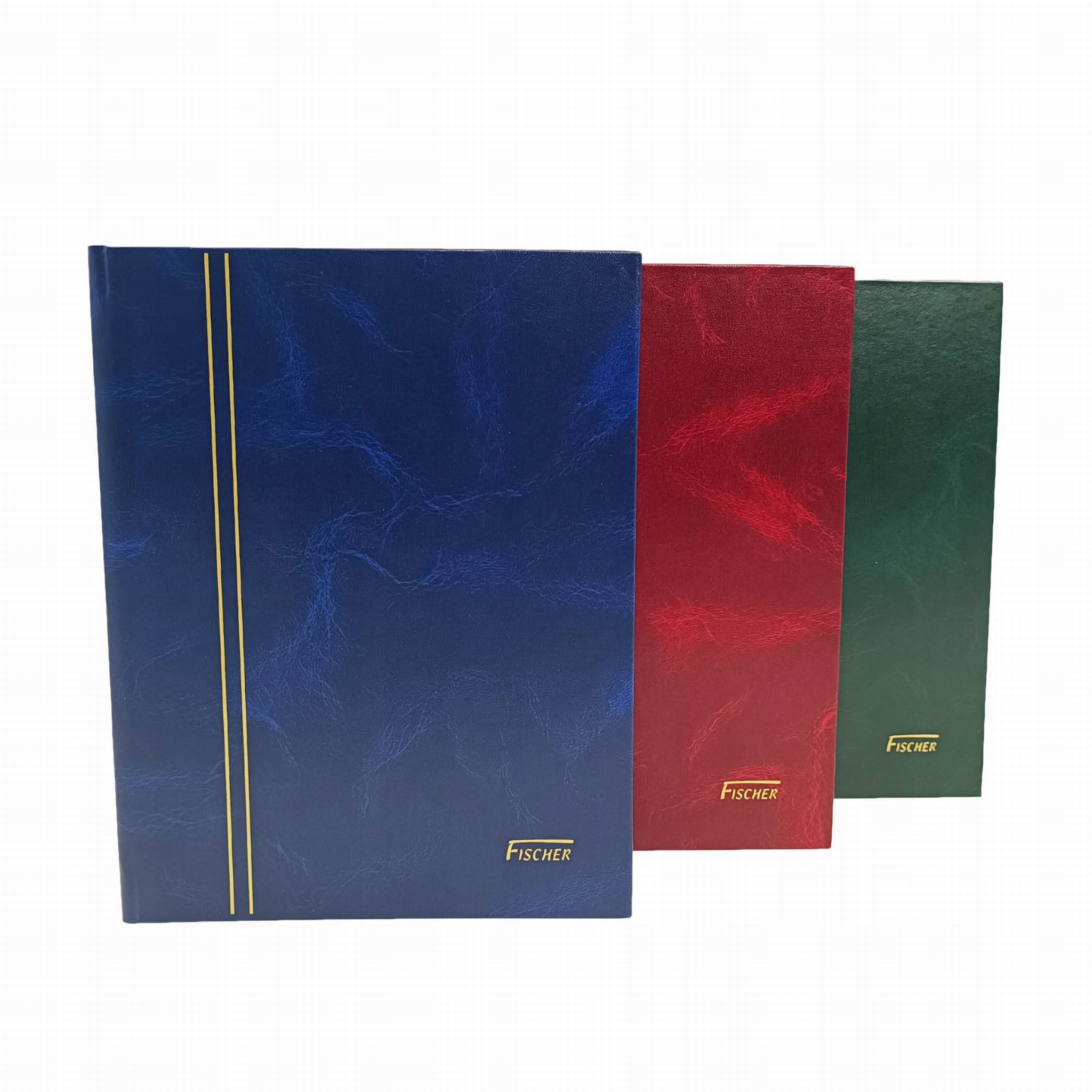 Твердый переплет. Разделители из пергамента, черные карточки. 6 полосок прозрачного эстофола. Золотой логотип FISCHER и две на обложке. полосы.