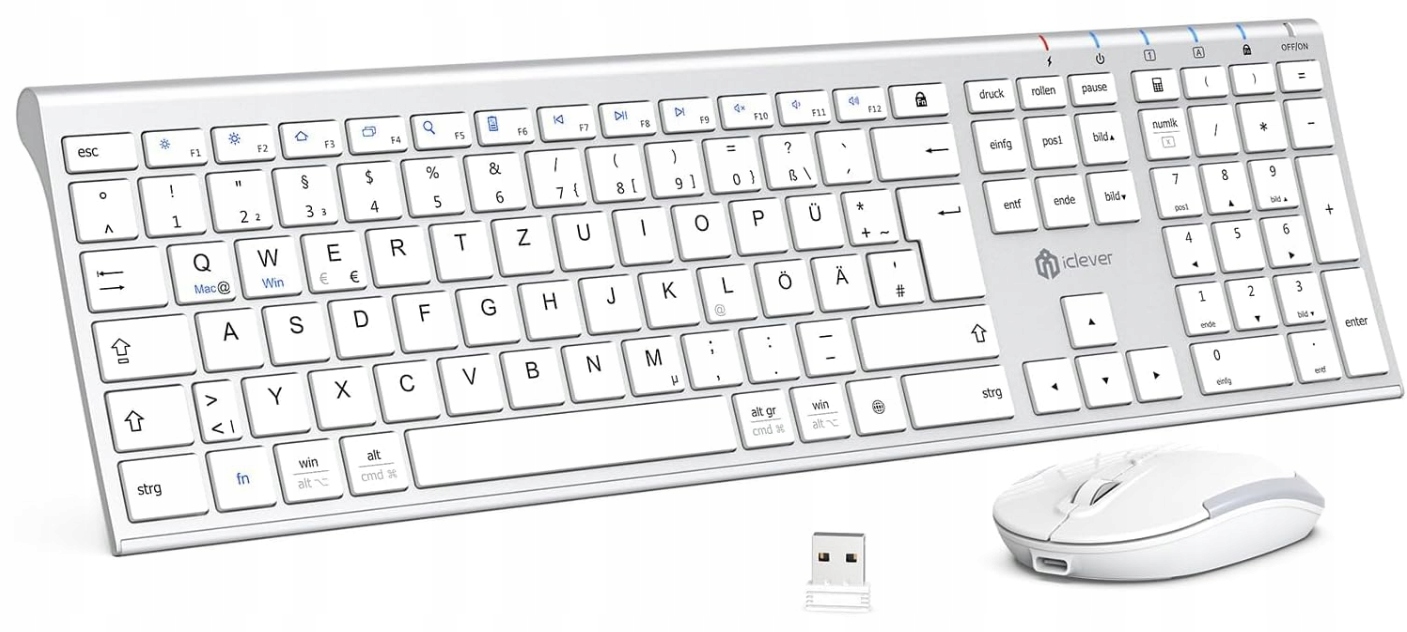 Прочный и эксклюзивный. Беспроводная клавиатура и мышь iClever изготовлены из нержавеющей стали и АБС-пластика и имеют угол наклона 10°. Он позволяет работать на настольном компьютере без кластеров, что делает его идеальным выбором для офисного использования. Комплект клавиатуры и мыши iClever обеспечивает чрезвычайно удобный и точный набор текста.