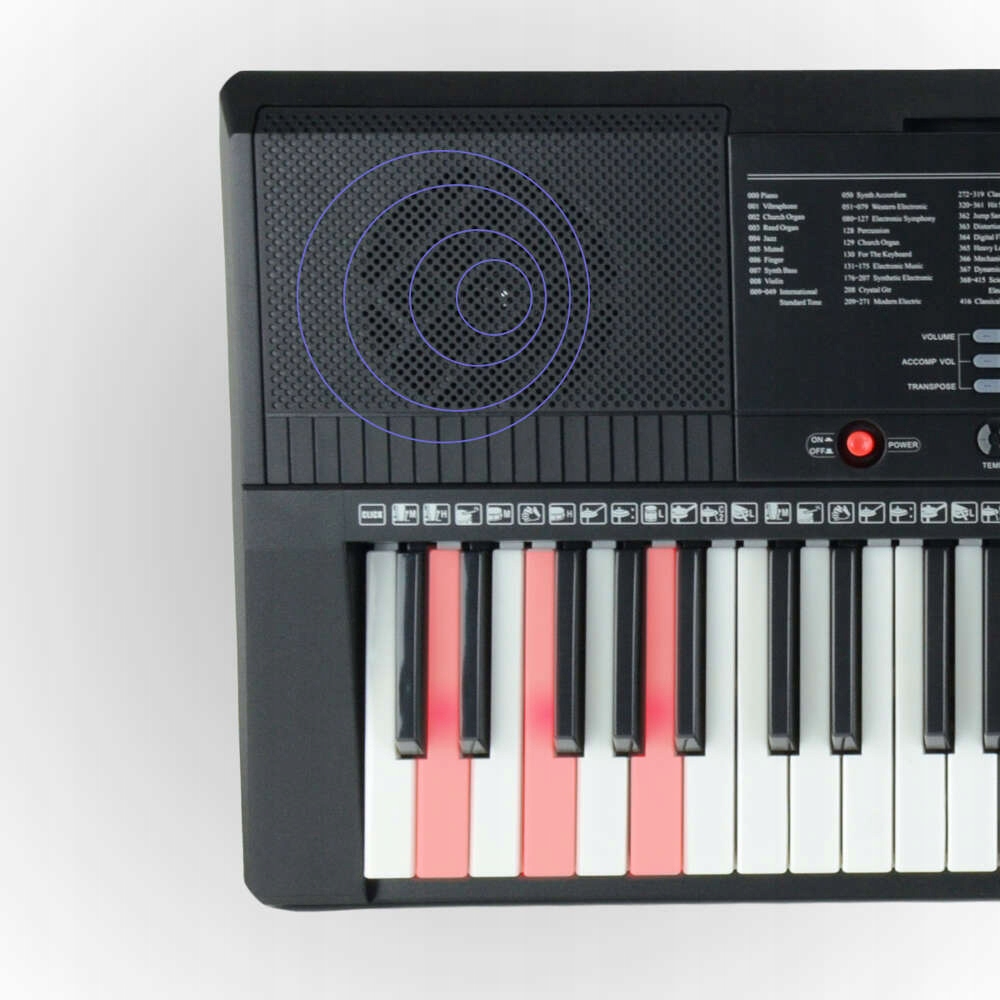 Ключи оснащены функцией подсветки, которая направлена на то, чтобы помочь вам научиться играть. Ключи могут зажечь, указывая на пользователя, какой из них должен нажимать в данный момент, который облегчает изучение мелодий и песен, особенно для начинающих. Эта функция облегчает запоминание и не учиться.