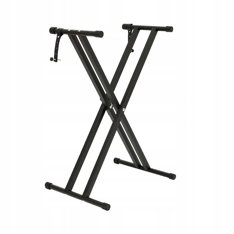AMBRA X4 — двойная универсальная и очень прочная складная подставка для клавиатуры, цифрового пианино или синтезатора. Стенд полностью изготовлен из двойных стальных труб и прочных профилей. Он имеет порошковое покрытие черного цвета, что делает его устойчивым к царапинам и ржавчине. Он имеет складную крестообразную конструкцию с 7-точечной регулировкой высоты в диапазоне от 30 до почти 100 см, что позволяет музыканту играть как стоя, так и сидя. Поперечины, поддерживающие инструмент, и ножки стойки AMBRA X4 отделаны резиновыми накладками. Благодаря им клавиши прочно лежат на месте и вся конструкция не перемещается по земле. После игры рамку можно быстро сложить. При этом он занимает мало места, что упрощает транспортировку и хранение. Это надежная, полностью профессиональная и в то же время относительно дешевая подставка для клавиатуры. Двойная система трубок в стойке обеспечивает отличную устойчивость даже при работе с более тяжелыми инструментами.