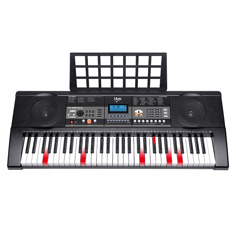 VK 500-61L-отличный инструмент для детей, оснащенный 61 динамическим клавишами, которые сияют во время урока, способствуя обучению играть. Количество звуков и ритмов будет развивать творчество и музыкальные способности вашего ребенка!