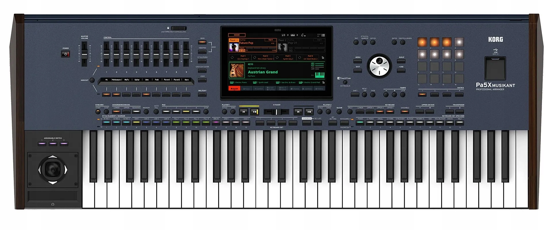 Pa5X, полностью переработанный и оснащенный усовершенствованным звуковым движком и оптимизированным, красочным пользовательским интерфейсом, обеспечивает невероятно богатое и уникальное звучание, которое вдохновляет вас творить и выступать! Pa5X — новейшая флагманская модель серии KORG Professional Arranger, которая меняет представление о классе аранжировщиков.