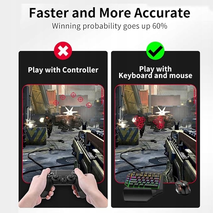 - Лучший игровой опыт: опыт онлайн-игр, предустановленная знакомая раскладка клавиш клавиатуры прекрасно восстанавливают ваши игровые впечатления в Интернете. Быстрое прицеливание, позвольте контроллеру удивить вашу команду, а управление с помощью клавиатуры и мыши значительно улучшит игровой процесс. Идеальное управление обеспечивает более высокий процент выигрышей.