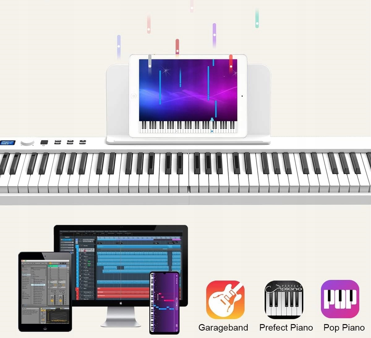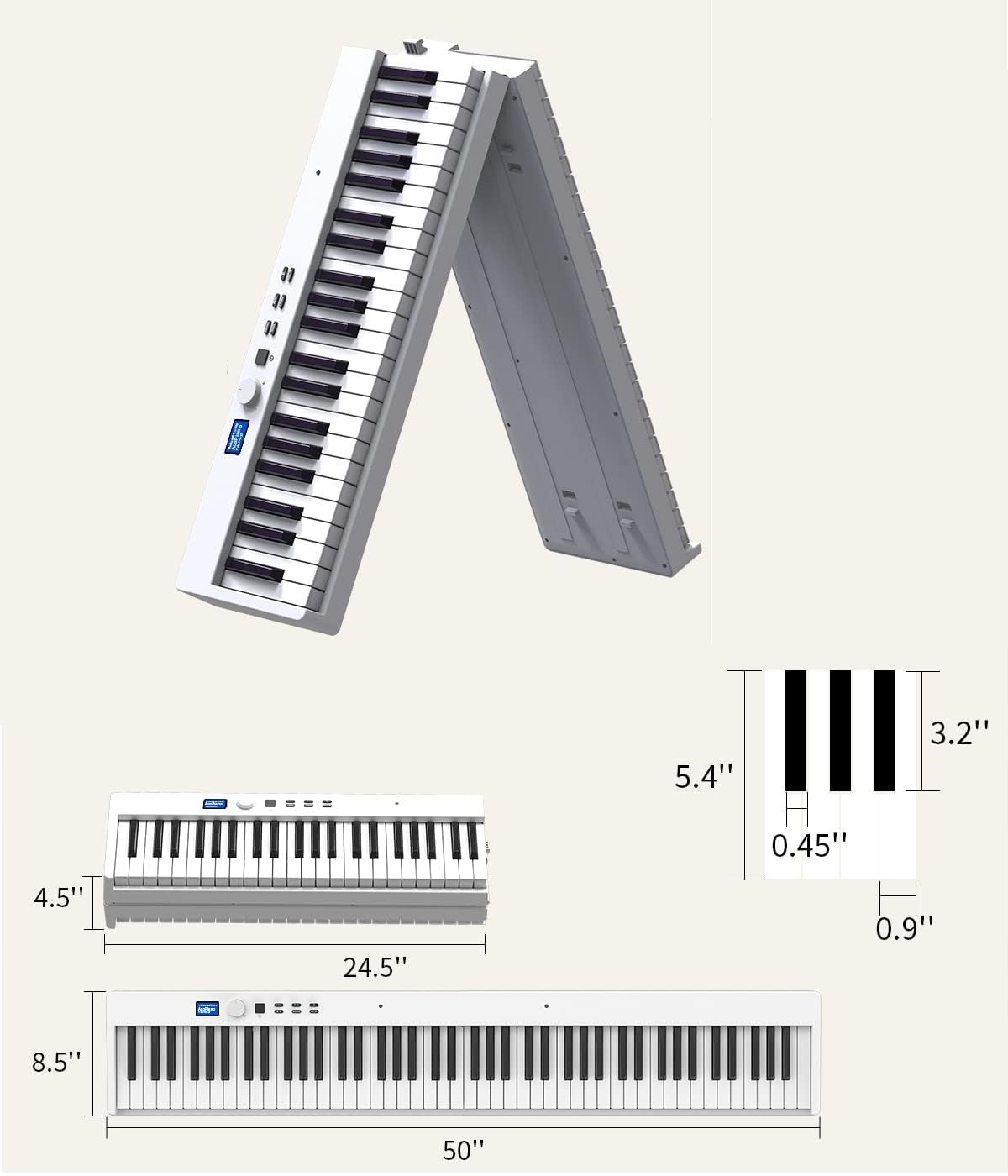 Клавиатура OYAYO PJ88C Портативное складное пианино с 88 клавишами белых Bluetooth Connectivity H1>