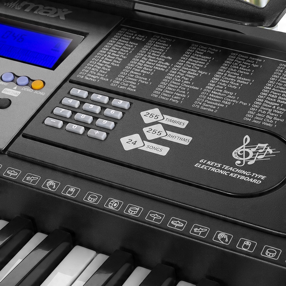 - Клавиатура с 61 клавишей и подставкой для музыки/планшета. li>