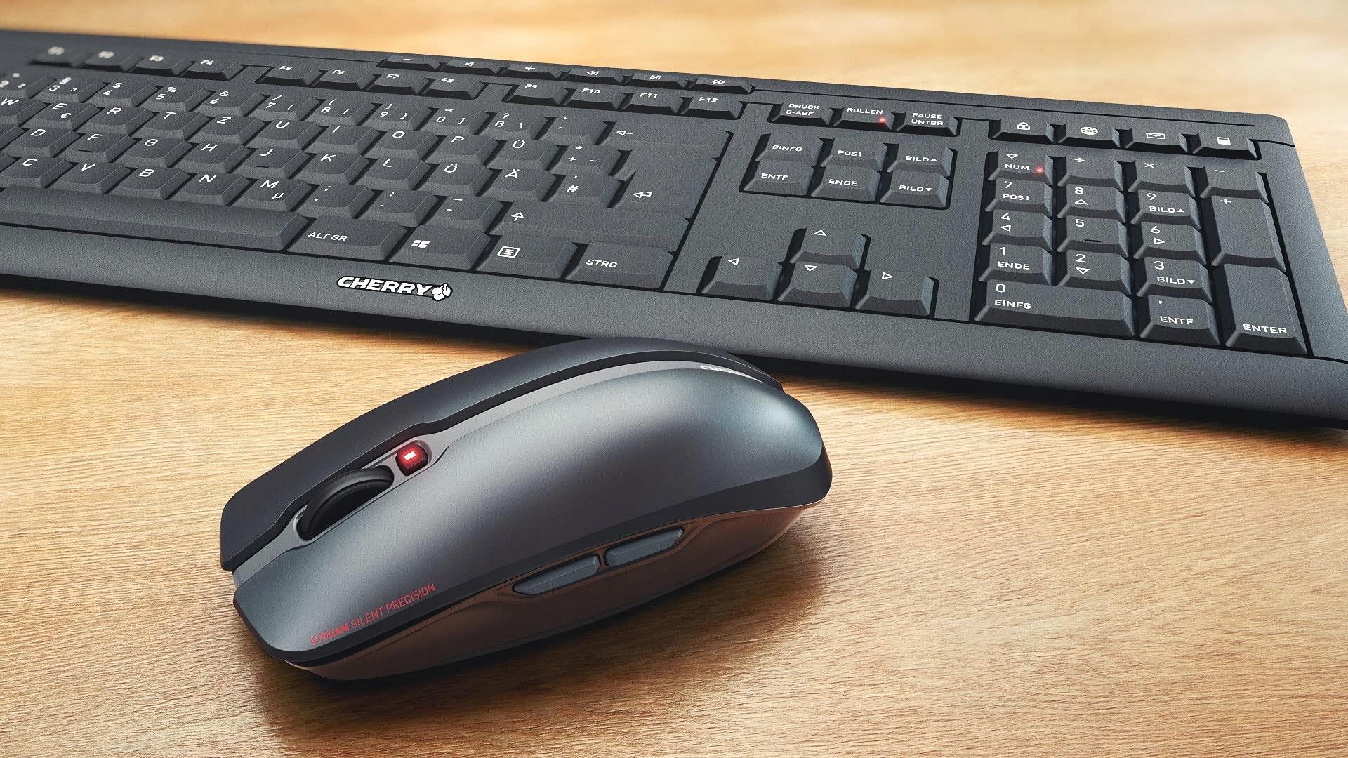 Пополнение рабочего стола Cherry Stream, беспроводная клавиатура и мышь, французская система, клавиатура Azerta, батарея, синий ангел, одобрение GS, механизм ножниц SX, тихий, черный h1> Производитель: Cherry Europe Gmbh h2>