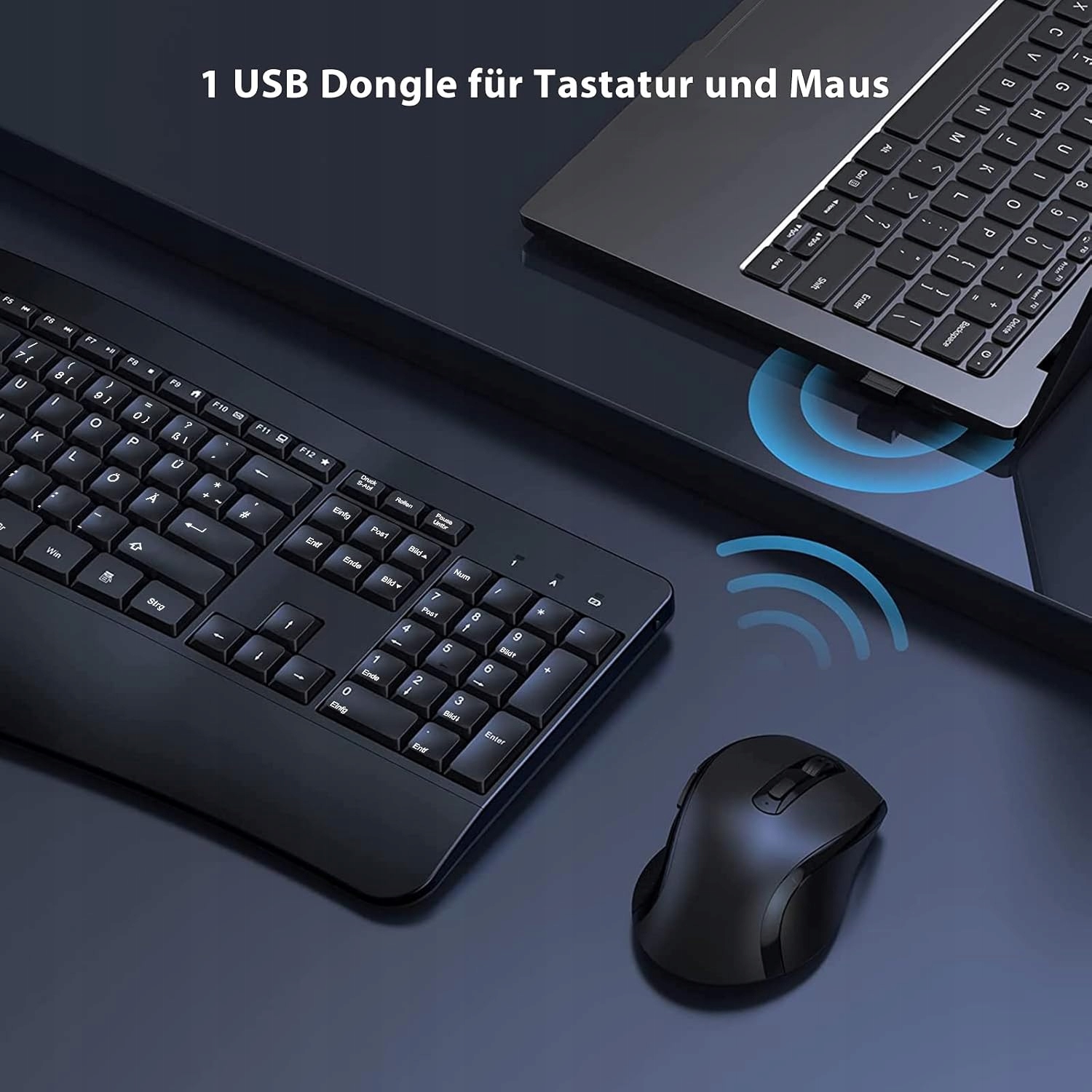 Набор клавиатуры и мыши, эргономичная, беспроводная клавиатура и 2,4 ГГц мыши, Senda Full -Size клавиатура с подушкой для запястья и численной клавиатурой, Qwertz System, Wireless PCS, ноутбуками с Windows, Black. h1>