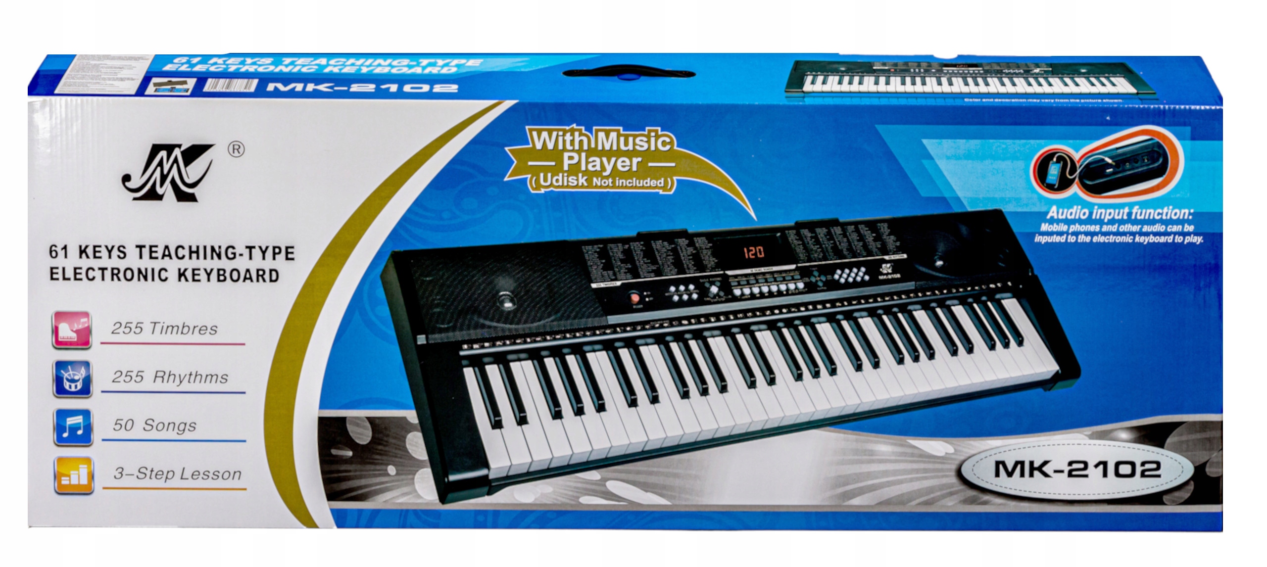 Клавиатурный орган MK-2102, 61 кл, подставка для клавиатуры, наклейки с музыкальными нотами