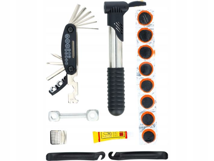 КОМПЛЕКТ ДЛЯ РЕМОНТА ВЕЛОСИПЕДА ремонтные ключи патчи КЛЕЙ НАСОС