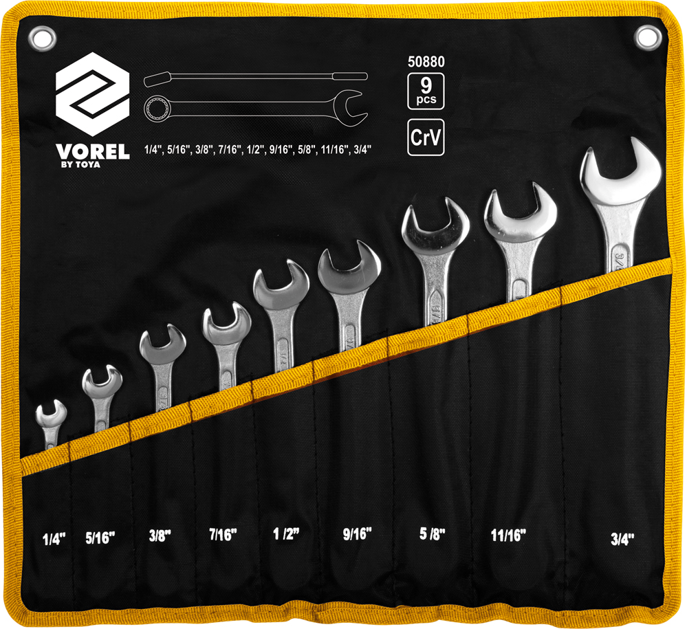 Ключи с плоскими дюймами 9CZ 1/4 "-3/4" Vorel 50880