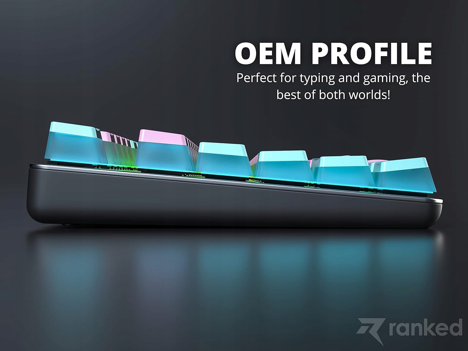 - Профиль OEM - Эргономичный ключевой профиль обеспечивает удобство использования во время долгих игровых или рабочих сессий, а также лучшее чувство ключей
