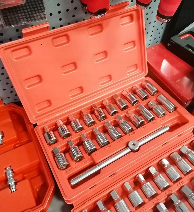 - 21-элементный комплект : он содержит ключи в различных размерах, которые позволяют открывать нефтяные пробки в транспортных средствах различных конструкций.