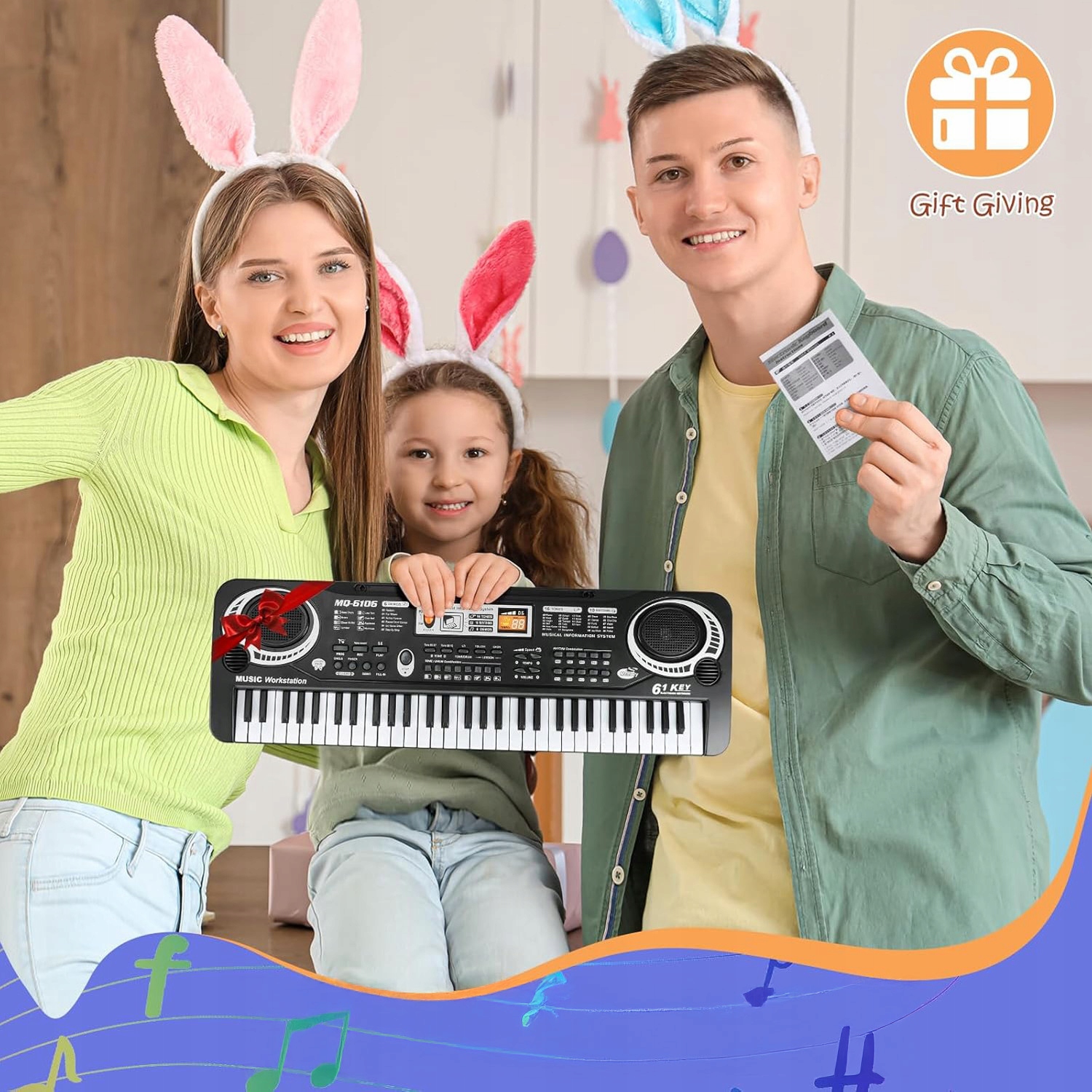 🎁🎁61 клавиша оригинального размера: Клавиши такого же размера, как у настоящего фортепиано, и позволяют узнать правильный отпечаток пальца и масштаб инструмента. 61 клавиша и 5 октав обеспечивают обучение и мобильность.