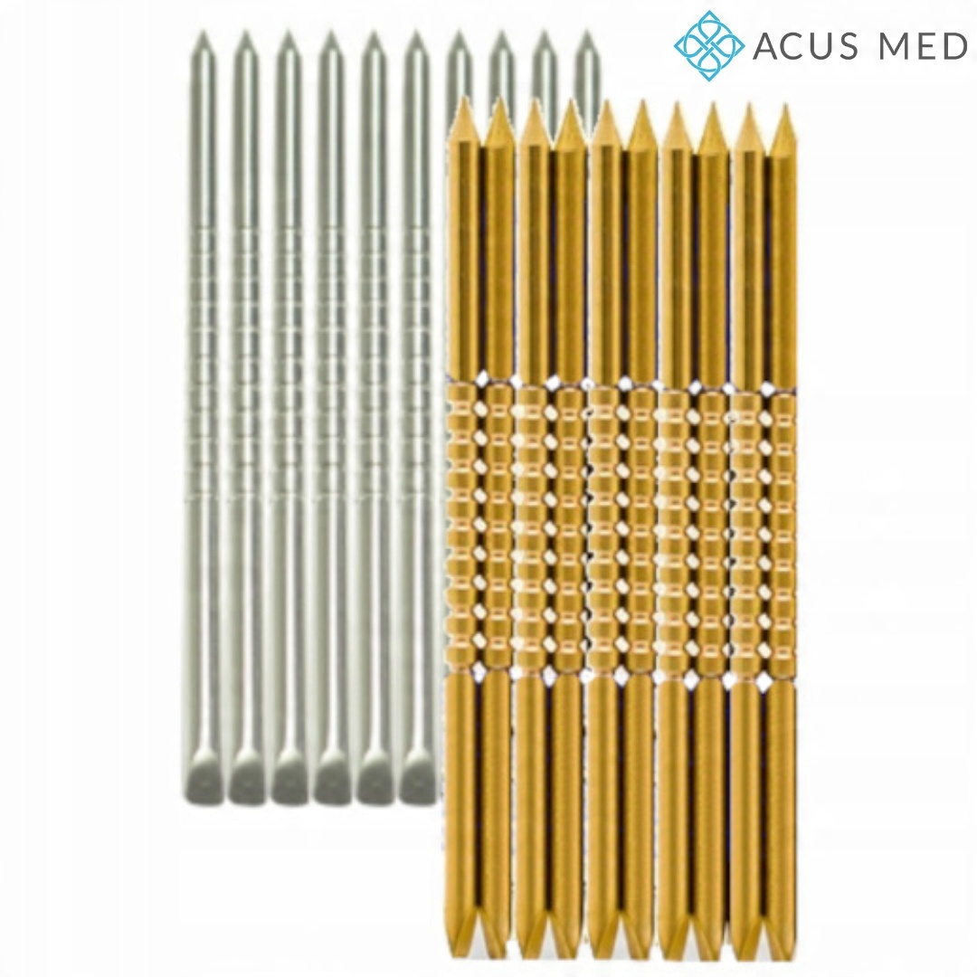 Шпильки используются для стимуляции нервных путей, отдельных акупунктурных точек и для манипулирования фасциями. ткань.