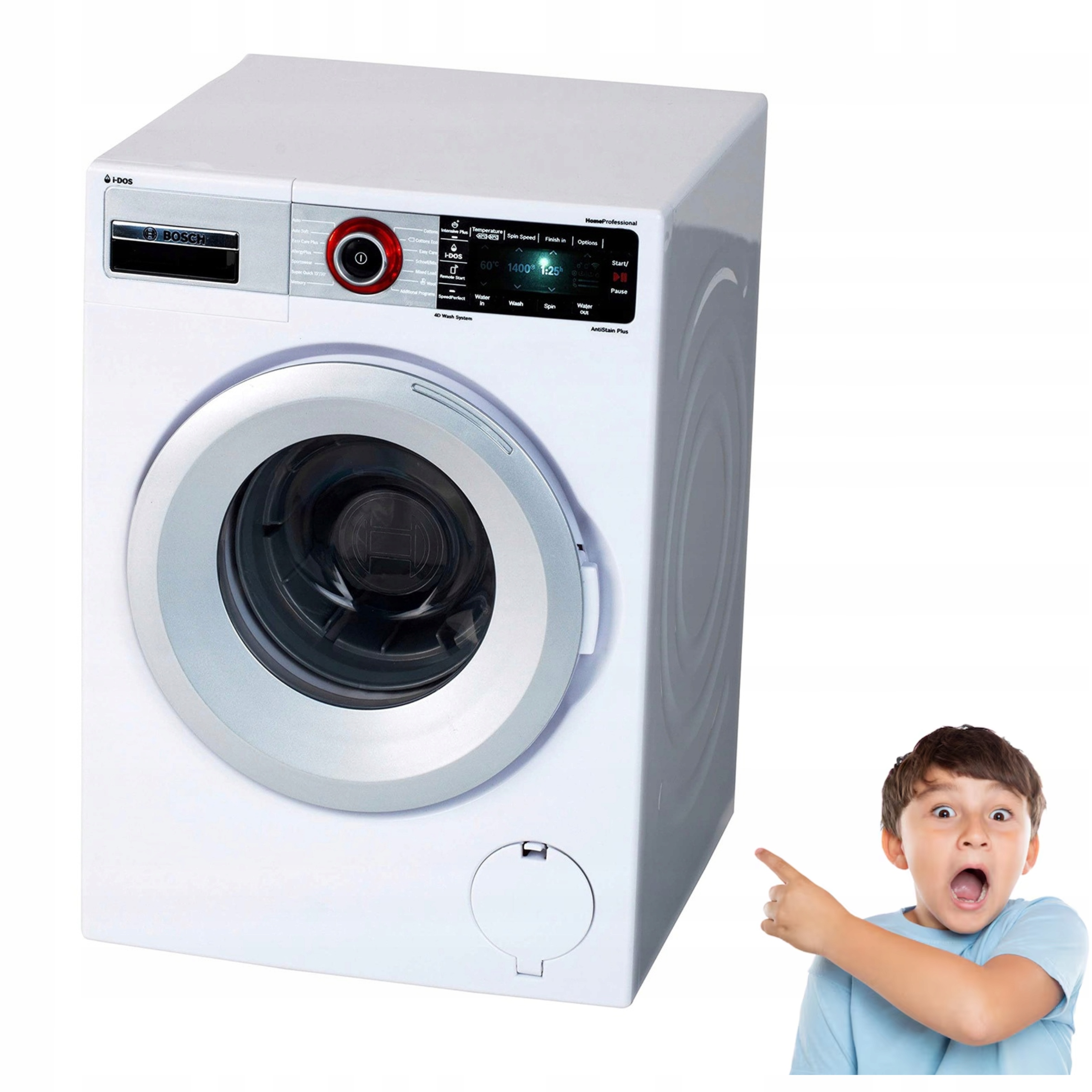 Вы ищете нечто большее, чем просто обычную игрушку? Эта стиральная машина представляет собой сочетание обучения и радости, которое вызовет улыбку на лице каждого ребенка. Он станет хорошим подарком на День Михаила, Рождество, день рождения или День защиты детей. В сочетании с другими игрушками из серии Bosch из него можно создать мини-прачечную или уголок бытовой техники!