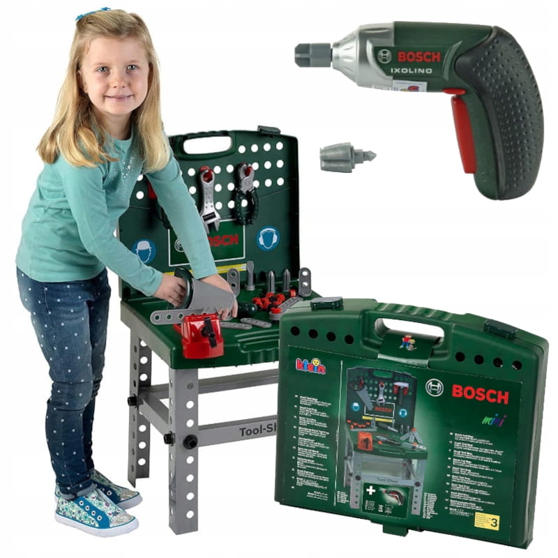 KLEIN ПОРТАТИВНА ДИТЯЧА ІНСТРУМЕНТАЛЬНА МАЙСТЕРНЯ З ШУРУПОВЕРТОМ BOSCH IXOLIN II