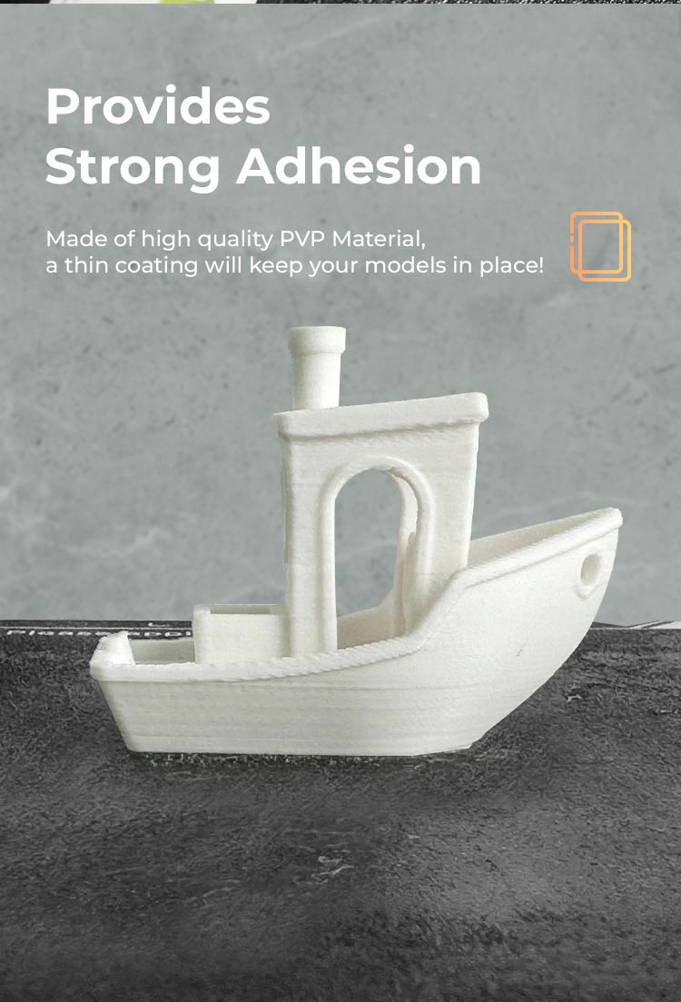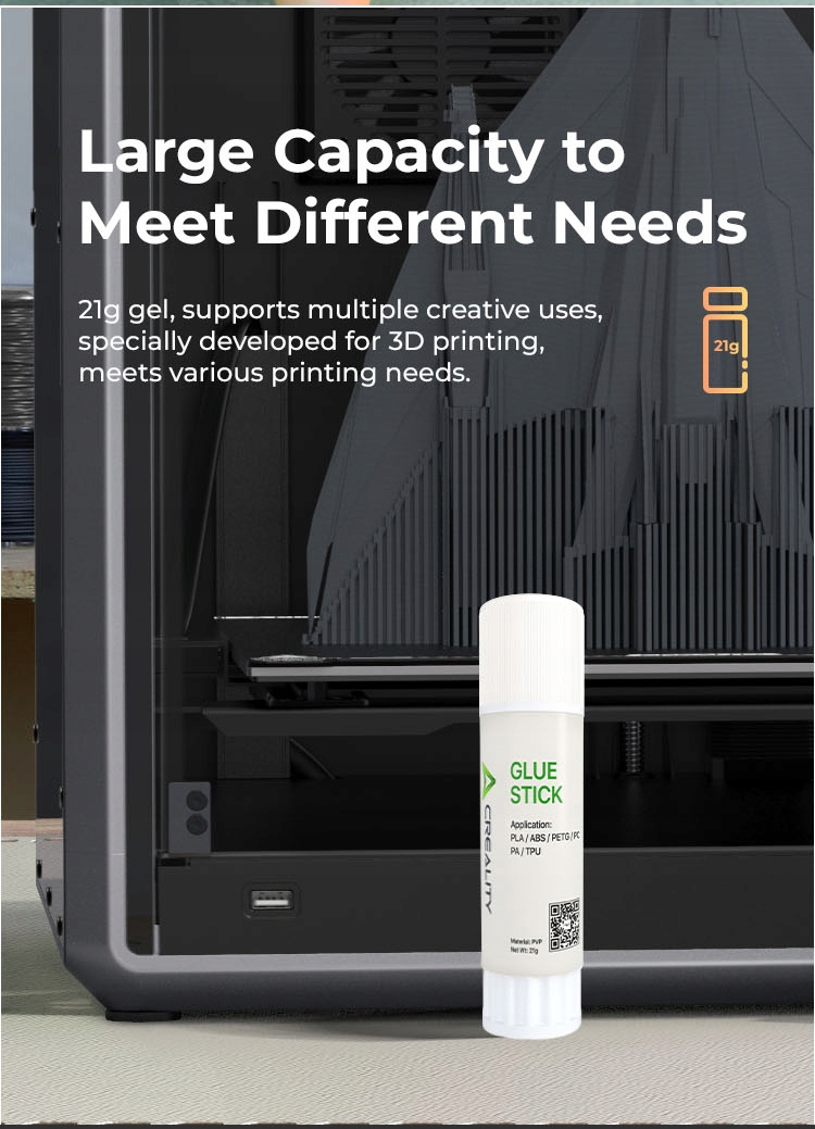 Creality Glue Stick — надежный помощник в создании качественных 3D-отпечатков. При весе всего 21 грамм он идеально подходит для точного и удобного нанесения клея на платформу принтера. Благодаря специальной формуле этот клей обеспечивает прочное сцепление деталей с поверхностью стола, предотвращая смещение и деформацию в процессе печати. Удобен в использовании, не оставляет следов и легко смывается водой после работы.
