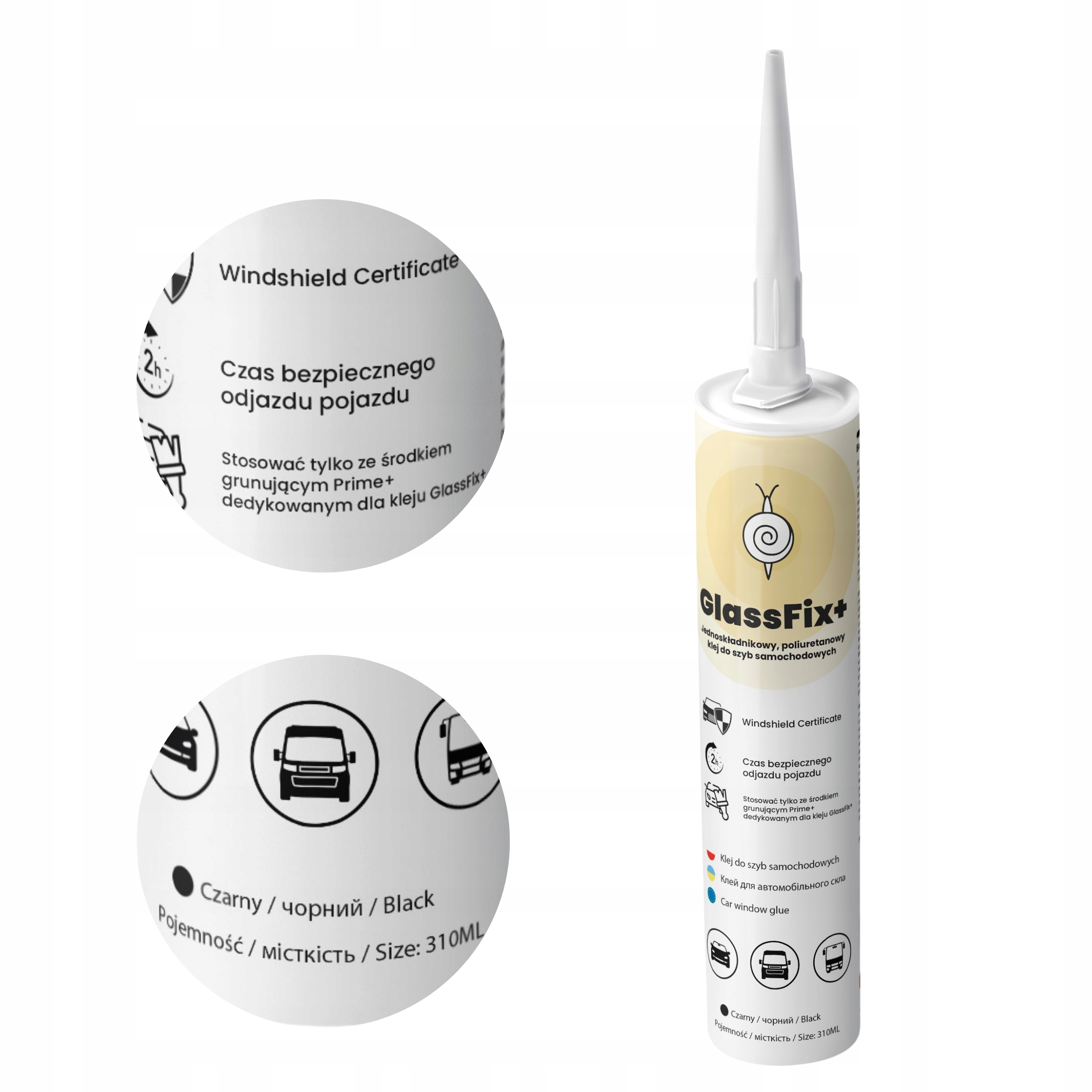 GlassFix+ — решение, обеспечивающее высокую адгезию к стеклу и металлу, устойчивость к влаге, переменным температурам и большим нагрузкам. Продукт совместим с системами подушек безопасности и соответствует стандартам обслуживания OEM, гарантируя надежность и безопасность использования.