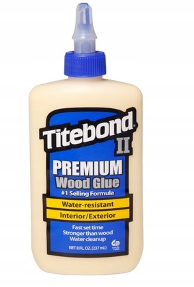 Titebond II — однокомпонентный перекрестно-клеевой состав. привязка дисперсионного клея к базе данных ПВА. Рекомендуется для холодного или горячего склеивания на высокочастотных прессах. а также для мини-суставов. Характеризуется коротким временем схватывания, стабильностью вязкости и относительно высоким содержанием сухих веществ.Titebond II может использоваться для монтажных целей. Соответствует требованиям следующих стандартов: европейского DIN EN 204 D3 и американского: ANSI/HPMA 1994, водостойкая связка типа II.
